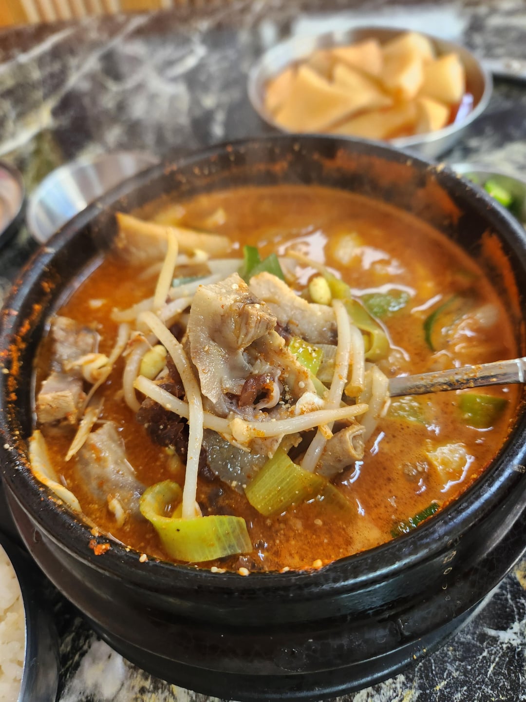 The portion was bigger than usual, a lot of meat(머리고기), and also varieties of intestines and organs which is my favorite. The broth was very thick and savory. Its just a random hole in the wall store in my neighborhood and I always saw that it was crowded when I pass by, albeit it's a really small store(4 tables). And only ₩8000 won per bowl which is like $5.80 USD, can't believe this is the first time I went to go try it!!