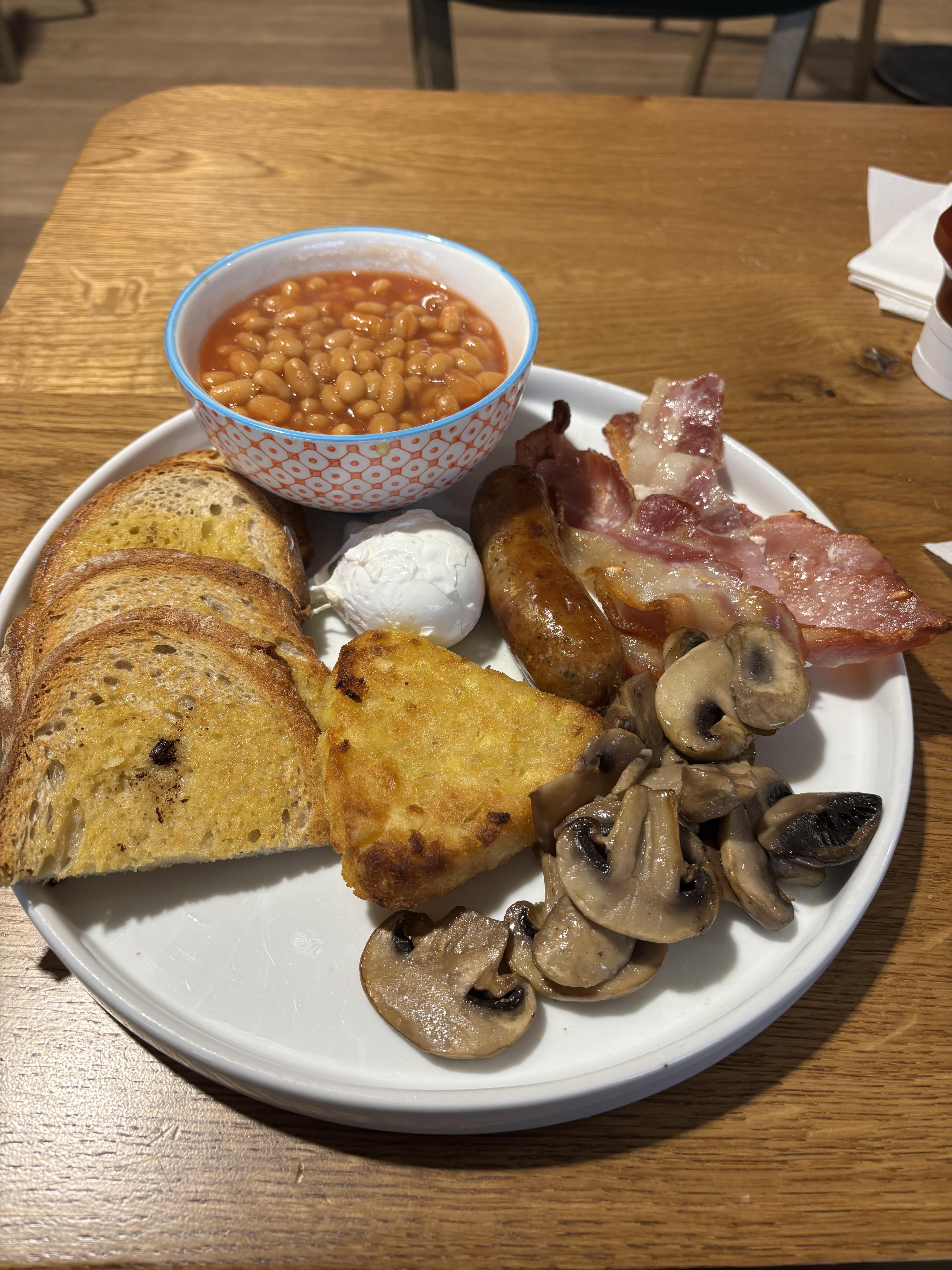 Toast, beans, sausage, egg top tier Hash Brown stale. Bacon ok. Mushroom needed to cooked longer. 8/10 really nice overall.by MrGoaty07 Write A CommentYou must be logged in to post a comment.