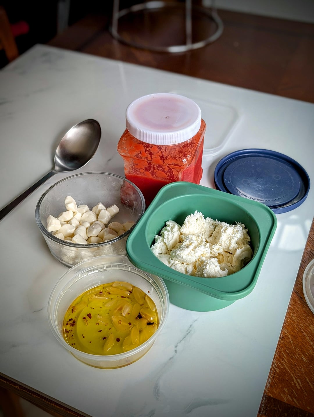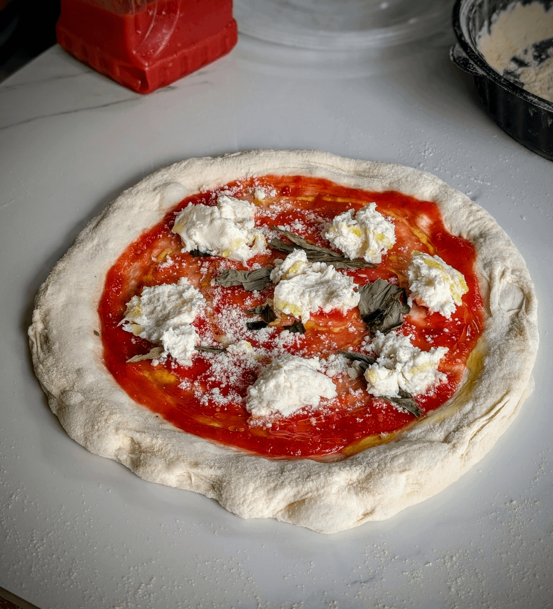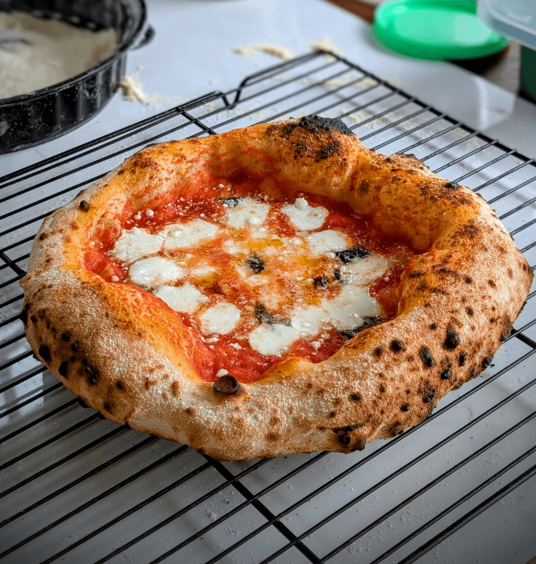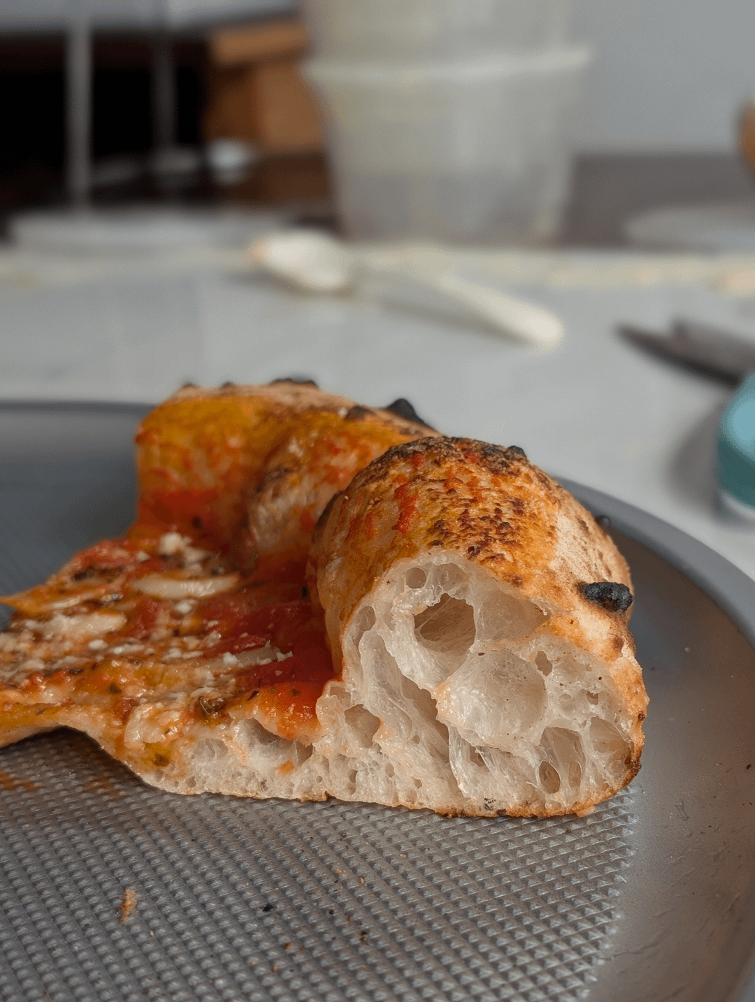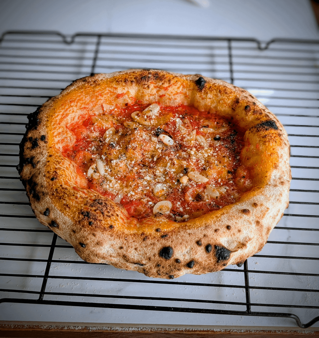 Made three pies, one with the Pearl mozzarella margherita, one with buffalo mozzarella and the final a tomato pie with marinated razor sliced garlic.