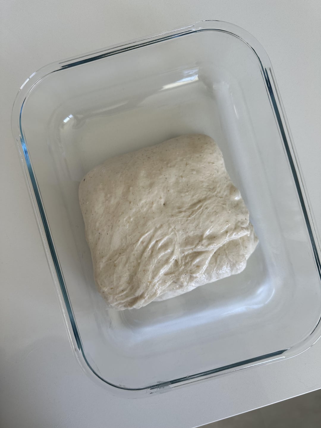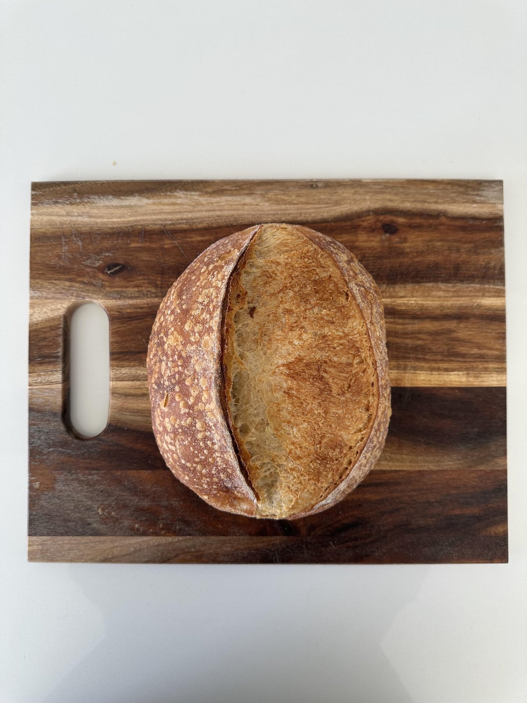 Used Natasha’s Baking quick sourdough recipe: 150g levain, 270g BF, 30g wholewheat flour, 222g water, 7g salt.