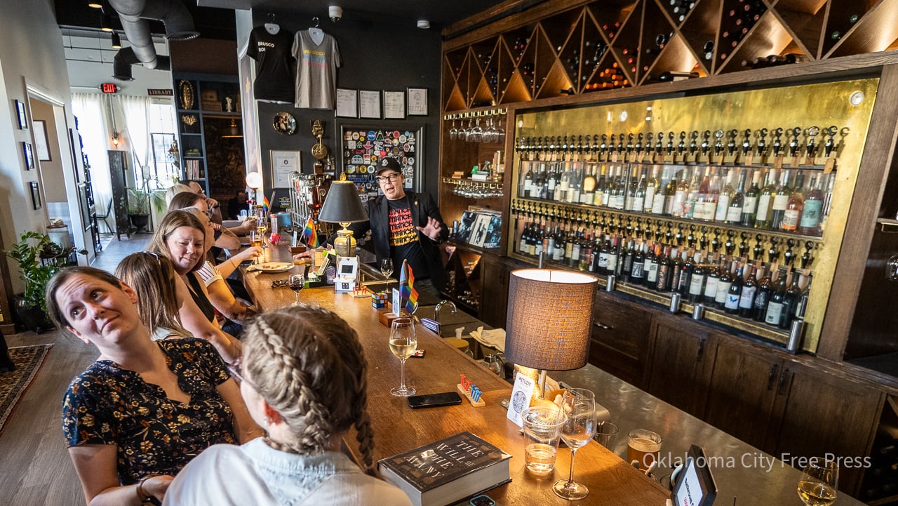 Ian Bennett visits with customers in his wine pub, “The Study” in downtown Oklahoma City (B.DICKERSON/Okla City Free Press)