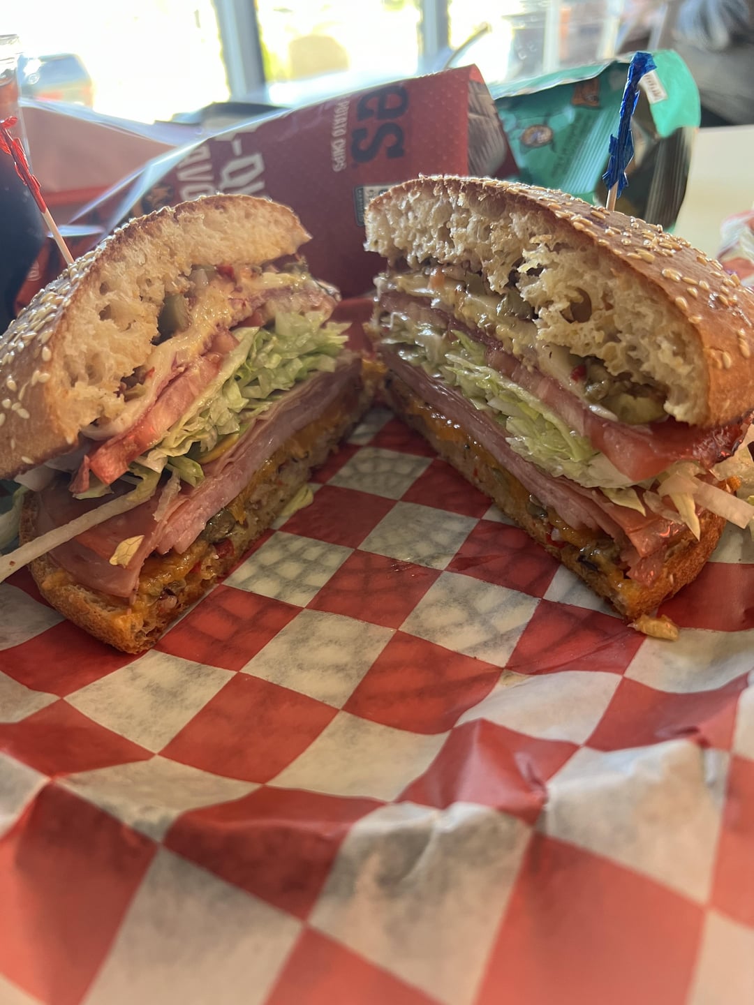 I don’t know anything about this place but this sandwich looks like it’s ripped off from the Original at Schlotzsky’s (who also based their Original on the muffulletta).