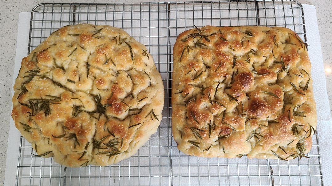 I want to eat both loaves immediatly but wanted to make the square one for a friend. I will say the round pan being aluminum didn't give it the browning on the bottom that the right square steel pan did. I'm gonna make meatballs and marinara tonight to go with this… wife is gonna be thrilled!