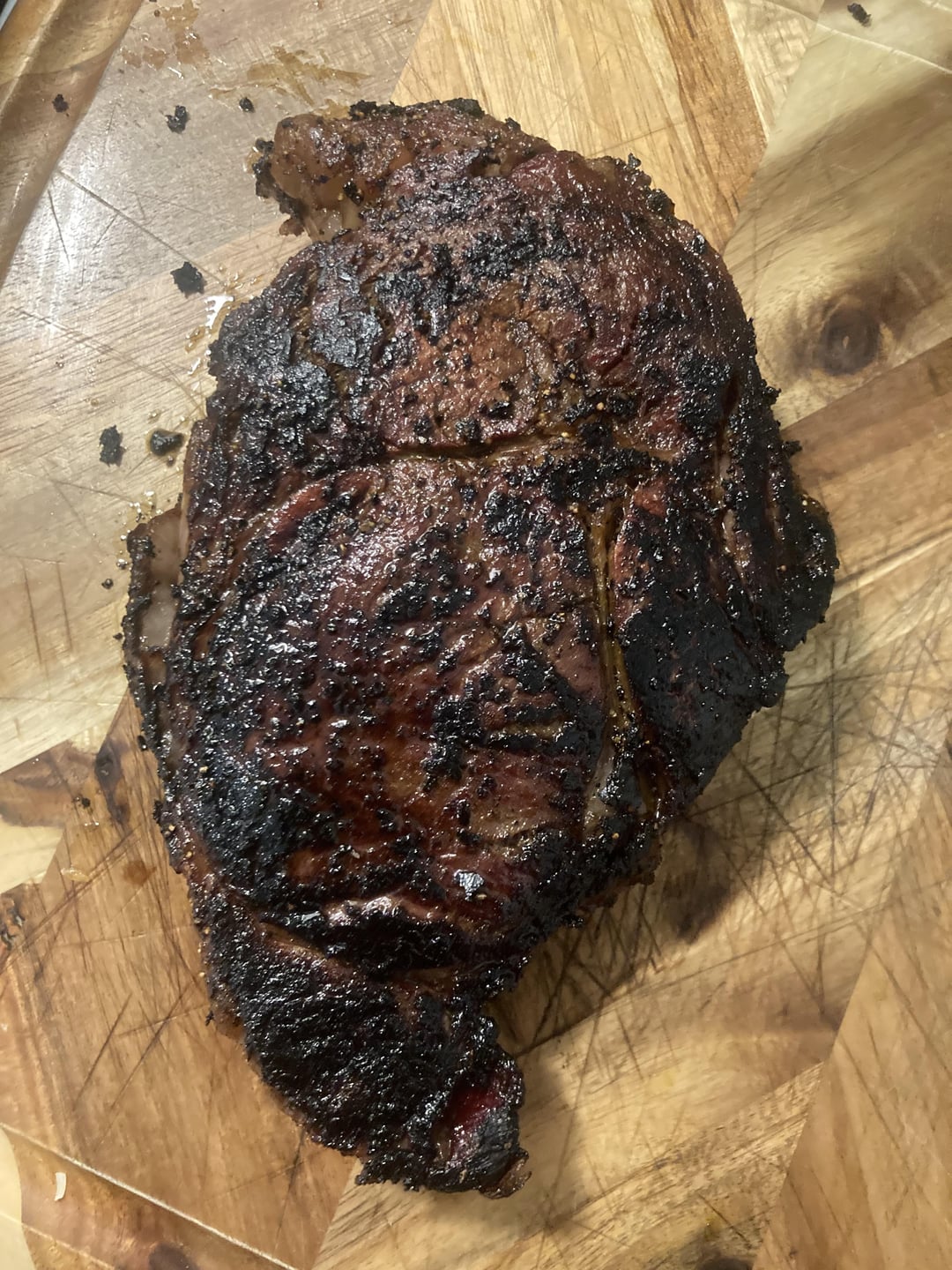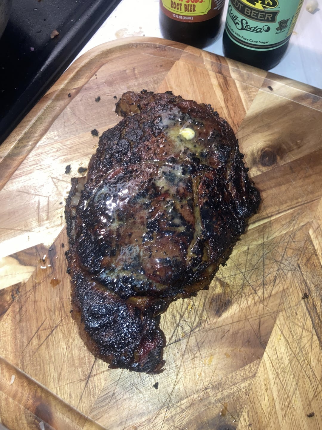 Smoked for an hour at 180 then seared on the cast iron for a minute on each side.