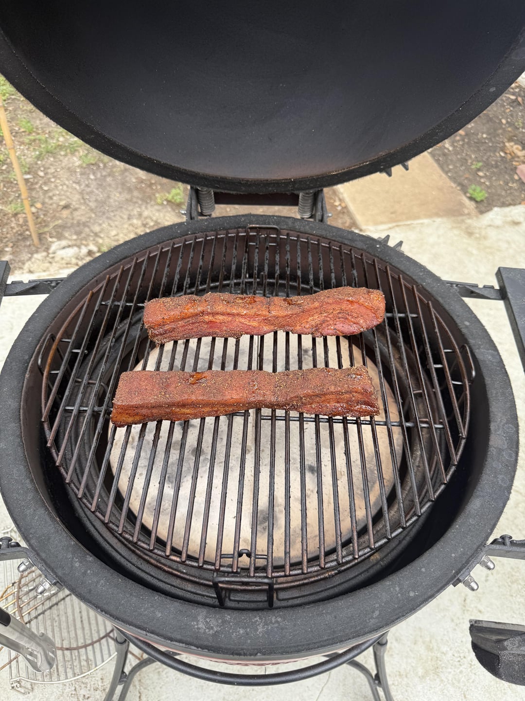 Had about a pound of pork belly that I did not end up needing in another recipe, cured it over the week and smoked it this morning. Really happy with how it came out! Only regret is that I didn’t just go buy more pork belly to just make more.
