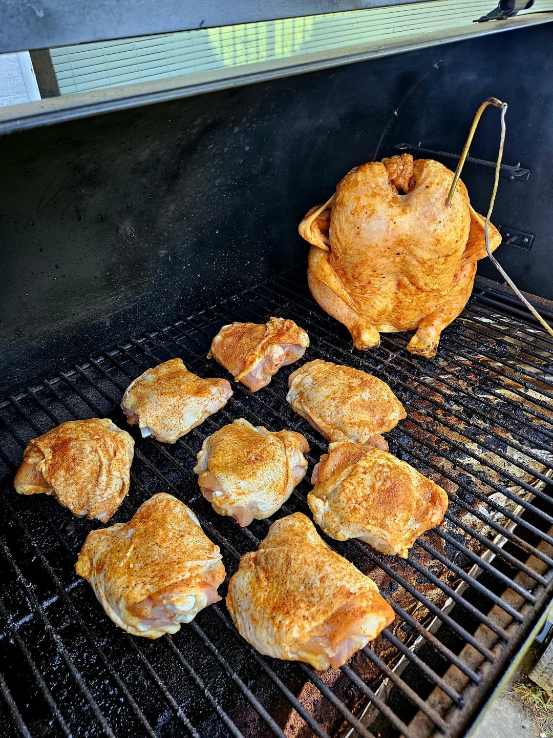 Beer can chicken and thighs! I think the full bird needed a bit more cooking time as this was my first try at it. All were delicious!