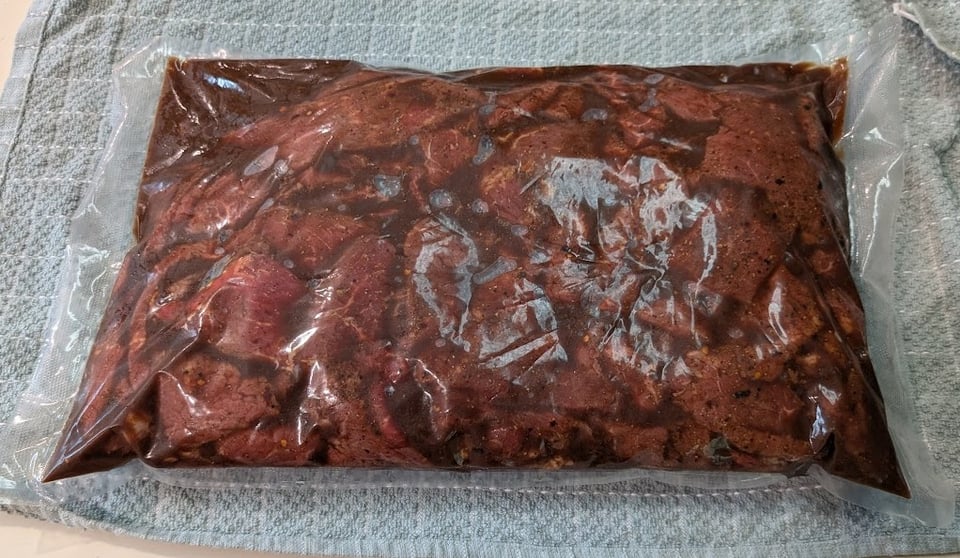 I had about 15 lbs of bottom round roast sitting in the freezer and decided to make some jerky. Sliced to 1/4inch and let sit in a marinade for 18 hours (mixture of soy sauce, Worcestershire, salt, pepper, onion and garlic powder, and hot sauce, and don't ask for amounts because I just added each until the flavor was right).
