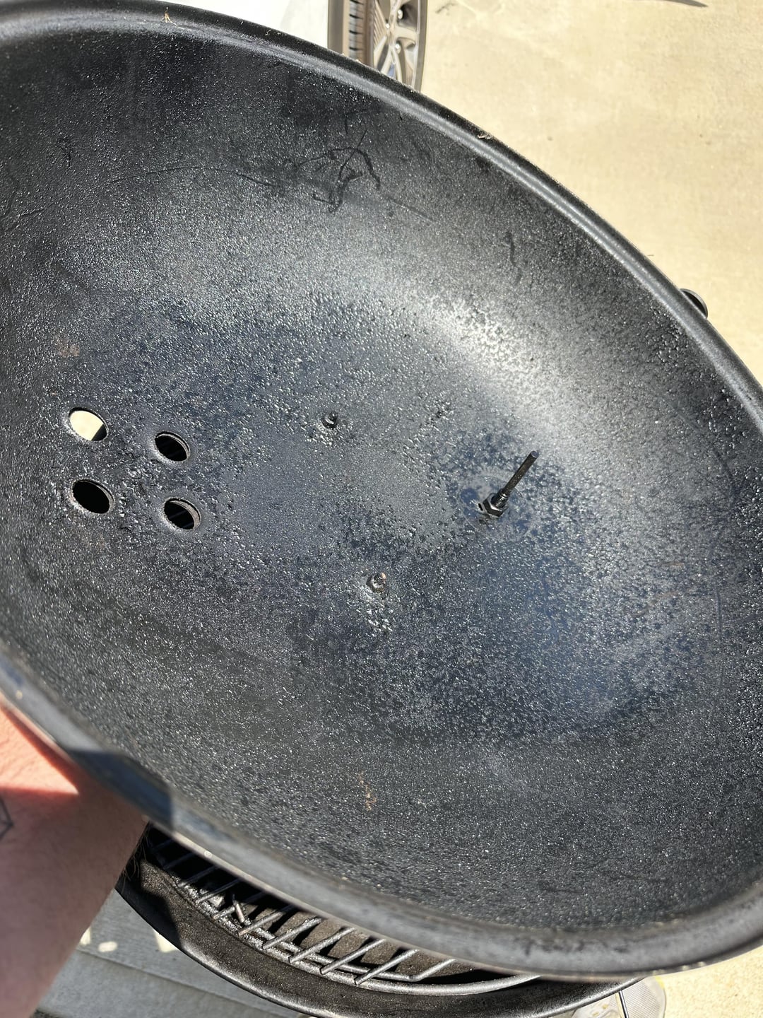 Hose down the lid, re season the big grate with half an onion and heat, the lower grate basically never needs anything
