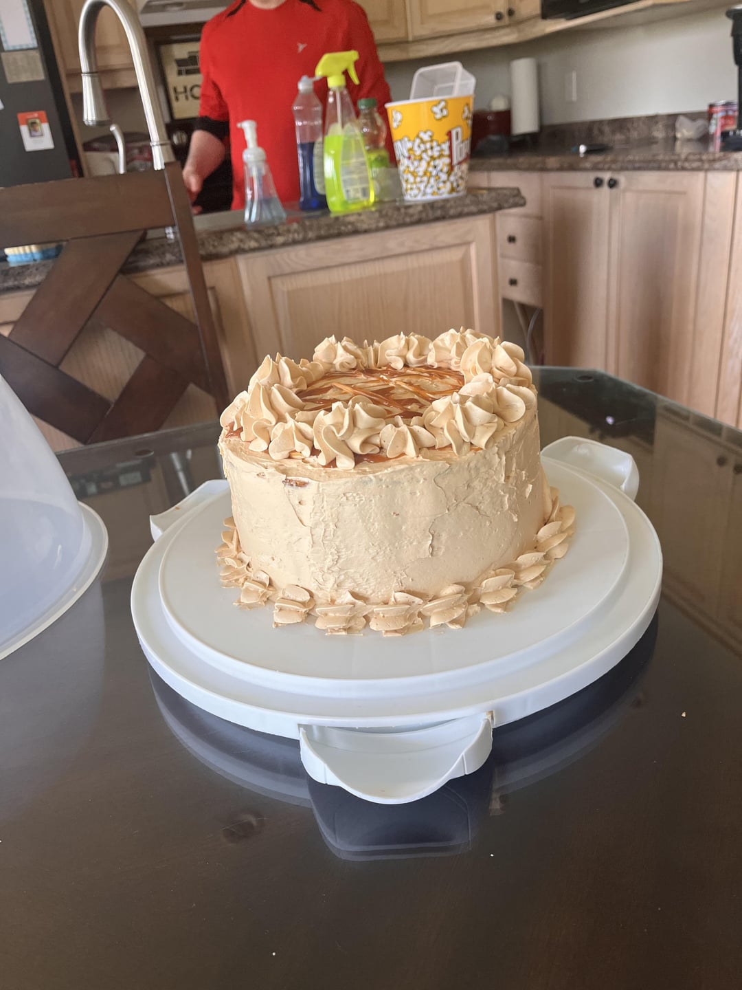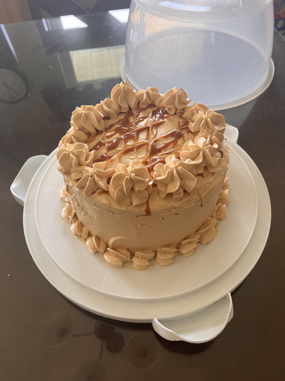 That cake looks SO yummy. And the filling!!!!! Blueberry and caramel sounds like the perfect flavor combo for this time of year. Enjoy a slice with your dad for us drooling over here on Reddit!!! 🤍