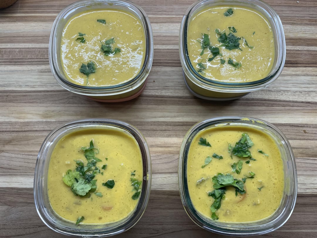 for dinner, i made lemon lentil soup (https://www.noracooks.com/creamy-red-lentil-lemon-soup/#wprm-recipe-container-896). i put four 2 cup portions in the fridge and froze two more 2 cup portions.