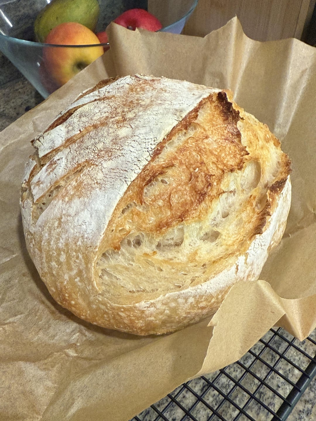 And there she was! I honestly had low hopes after she wasn’t looking like all the IG videos I watched but she tased great. Open to feedback! Starter is in the fridge for next weekends attempt.
