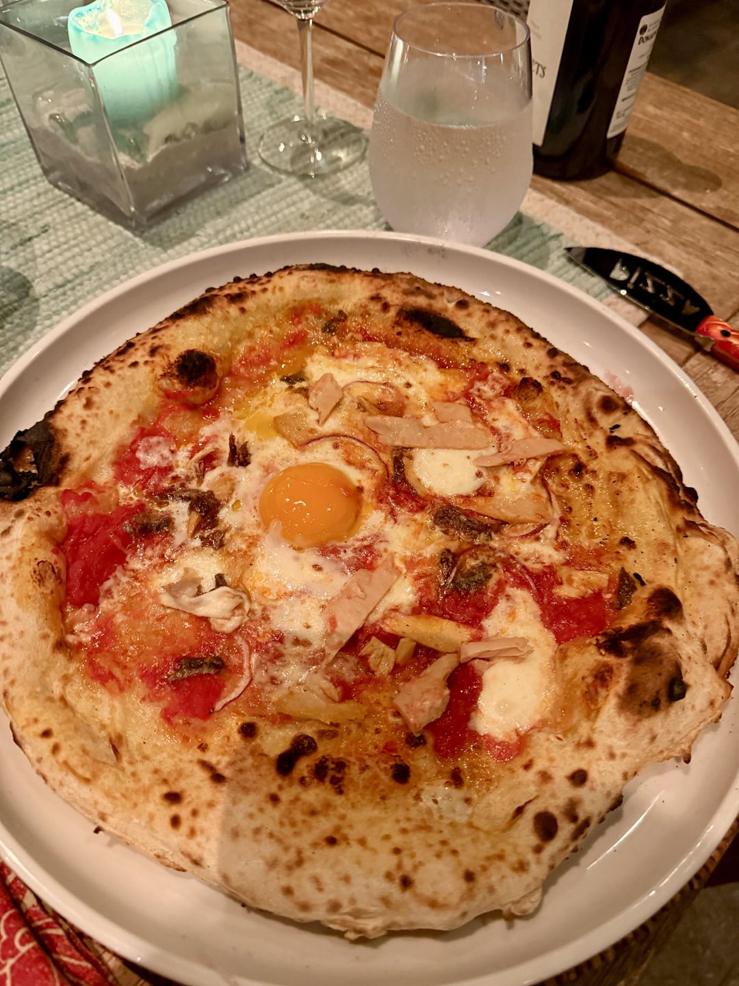 Tuna Anchovies and a fresh egg.. .& prosciutto, Stilton with balsamic glaze