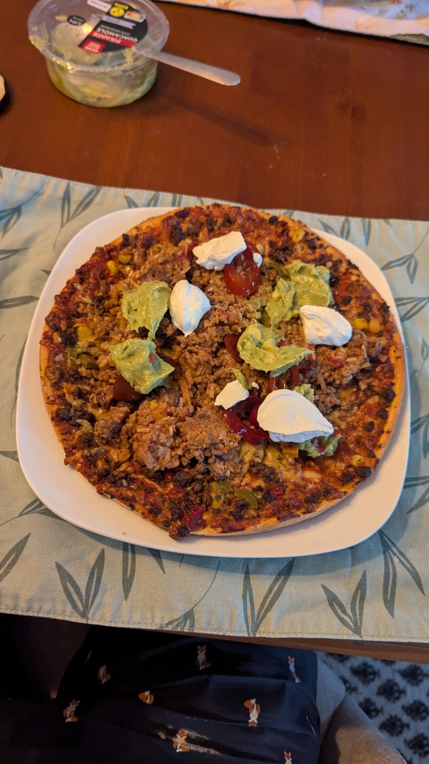 Added some extra meat, sour cream and guacamole to my Mexican pizza by simonb17 7 Comments Lolerzors 7 months ago Roll it up and you’ll sorta get a burrito pizza Newjacktitties 7 months ago https://preview.redd.it/hg5evzl3krxe1.jpeg?width=1284&format=pjpg&auto=webp&s=21356bbb92172ffa750afcbe9034cd5194a85f21 GlassyComparison 7 months ago Taco pizza is a midwestern delicacy. Large-Glass-3497 7 months ago 🤢 MadOvid 6 months ago That’s a crime! (To your bathroom) hors3withnoname 6 months ago Crime. But would. Fangsong_37 6 months ago This seems innocent to me. Most frozen Mexican pizzas come out kind of dry, so adding a bit of pep to it is a good choice.Write A CommentYou must be logged in to post a comment.