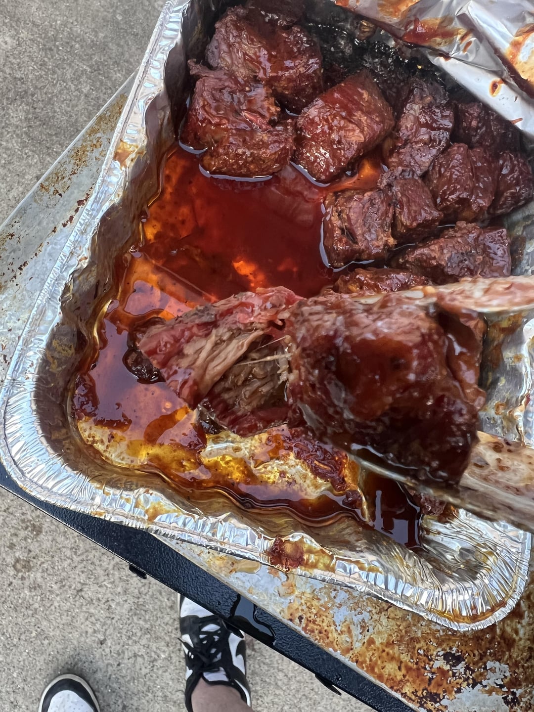 For the ribs I used the 3 1 1 method and Meat Church Holy Voodoo with Sweet Heat BBQ which I also used on the Poor mans burnt ends, and for the chicken I used Texas Sugar with Hot Honey BBQ brushed on when it hit around 155