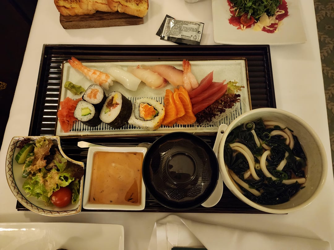 I spent a month in central Europe for my birthday and spent the last week in Vienna. After so much delicious, but heavy food, I was craving sushi and the Grand Hotel Wien has a very popular Japanese restaurant. I wasn't able to get a table so ordered room service. Got the sushi and sashimi set and the assorted rolls. It was fine and scratched the itch, but expected better for such a popular restaurant in a five star hotel.