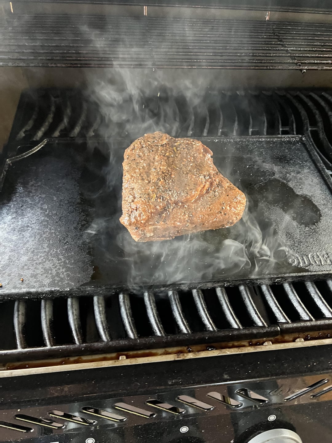 Hey Y’all just got done with this cook and I can tell you it was PHENOMENAL!! 134 degrees for 7 hours from frozen, finished on a scorching hot cast iron on the grill 1 minute or so per side with a spray of wagyu beef tallow. Served with mushroom gravy and roasted veggies. If you have a TJ’s near you, I highly recommend picking one up!!