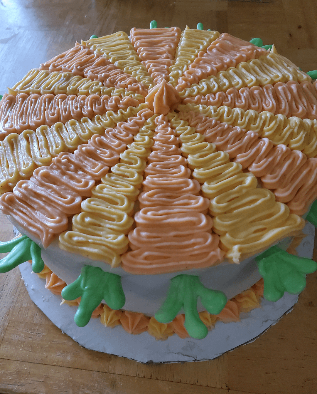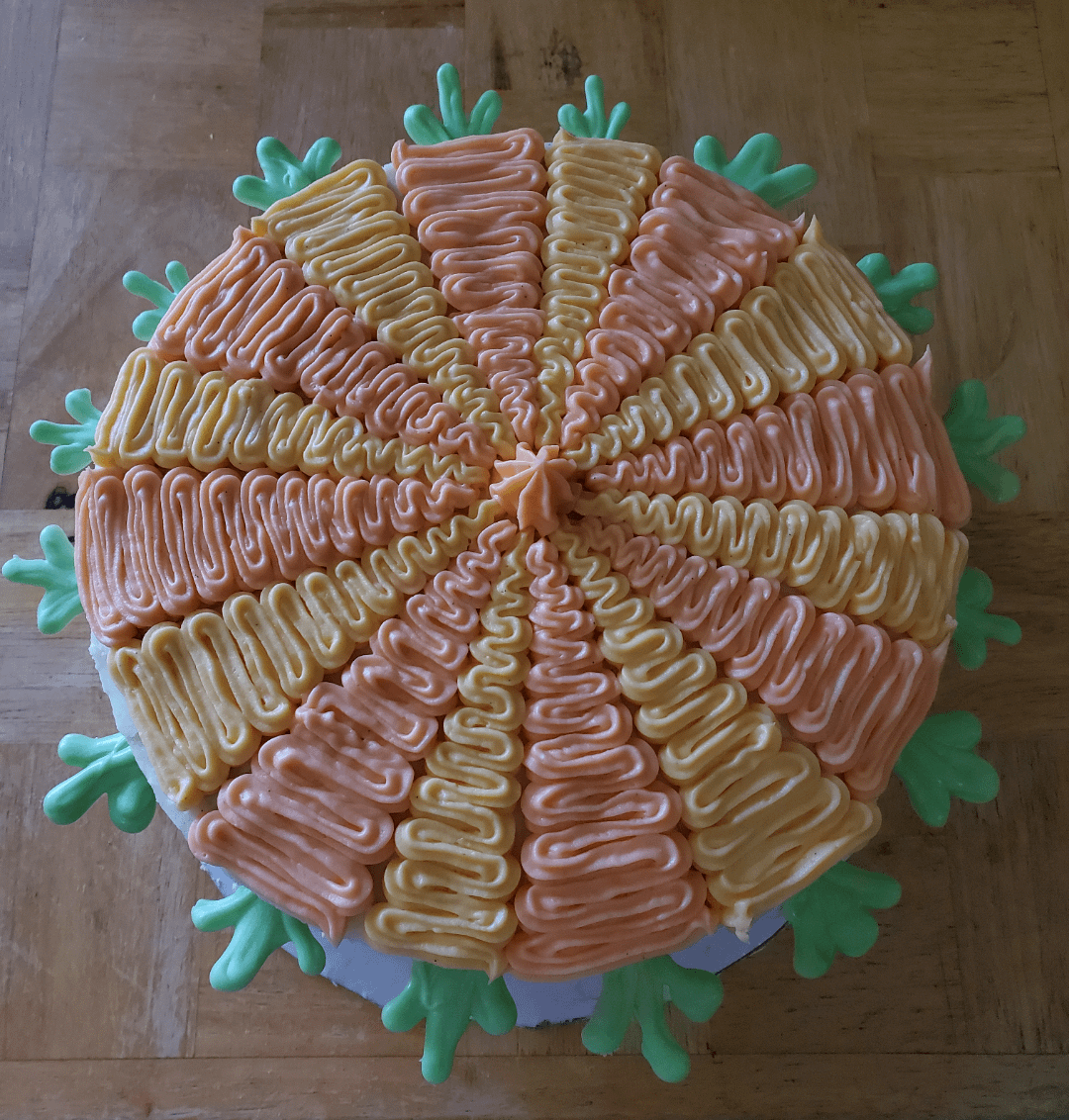 I used a basic Carrot Cake recipe with walnuts. The fun was the cream cheese frosting 🥰