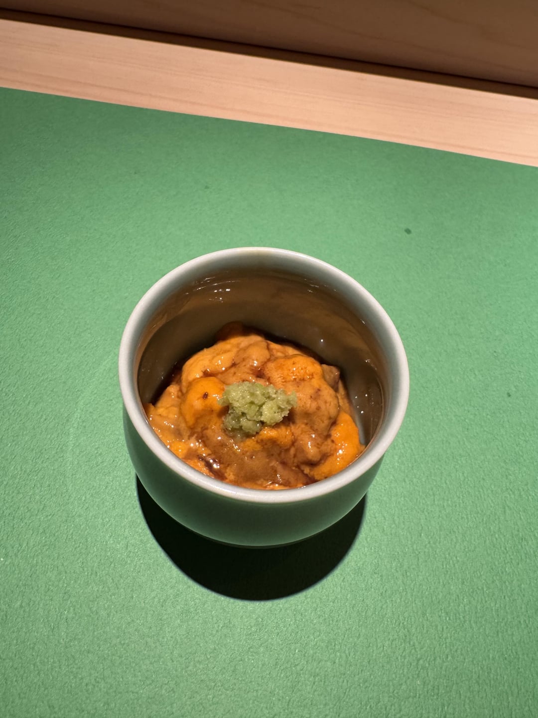 I decided to come here even though there were a few complaints on Google about the menu being a bit rushed. I can’t say that’s entirely false, I was there for about one hour for tsumami + nigiri but didn’t feel rushed at all; chef and his assistant were very kind and willing to talk about each course – like how he has two kinds of uni on the menu, one from Hokkaido and one from Tokyo bay.