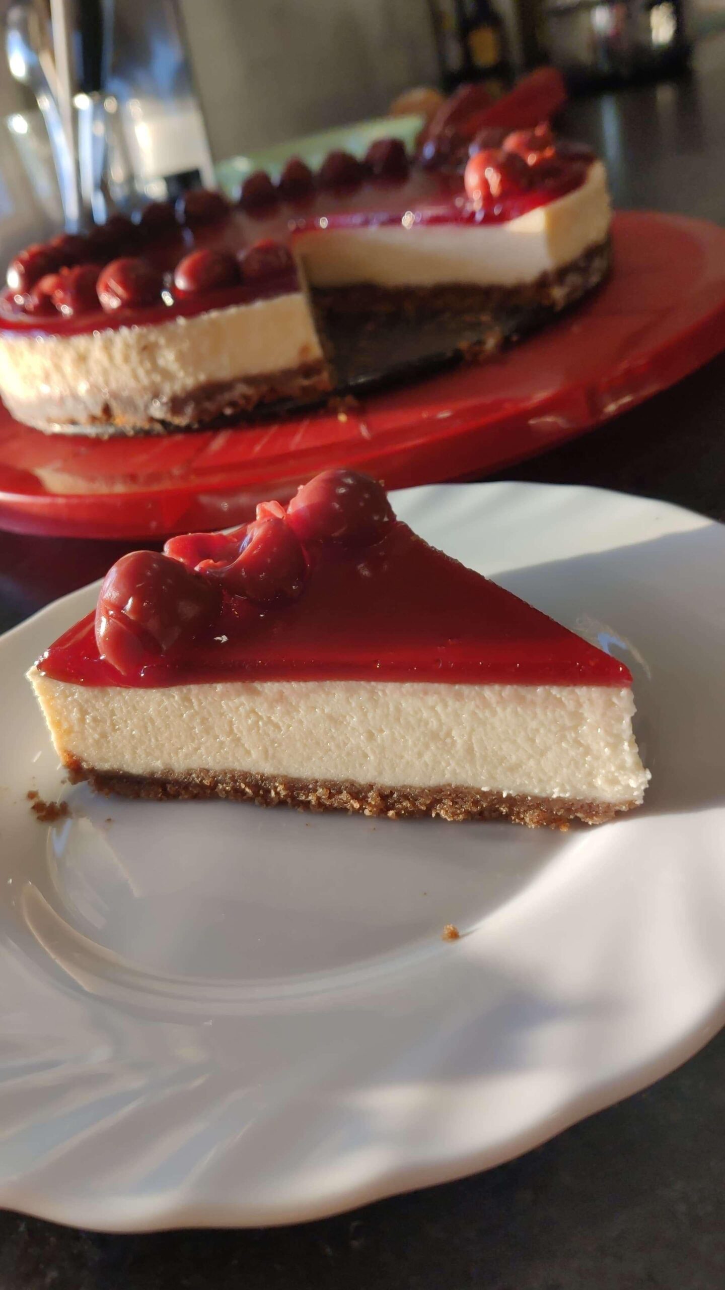 I don’t bake much, but I’m proud of this lil cherry-cheescake I made today