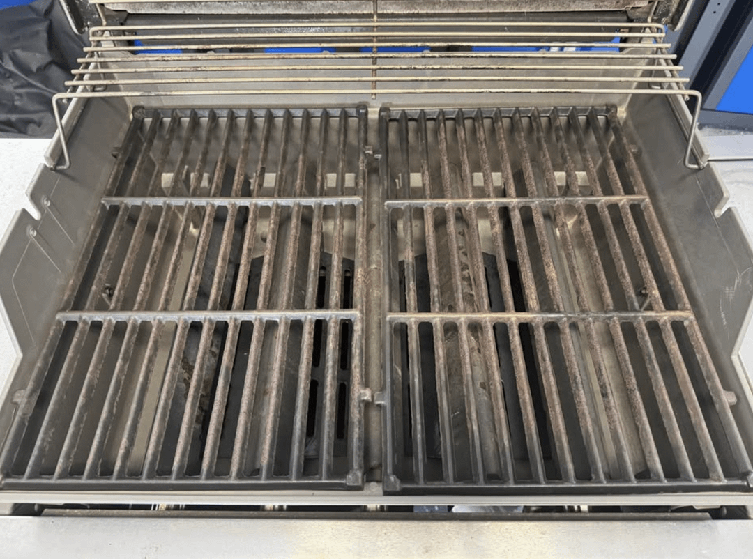 I would inspect and test all of the burners. Also for the electric start on the left, the button unthreads and there’s an AA battery underneath, in case that doesn’t work when you test it. If you need to replace any of the burners or flavorizer bars or igniters, the value of the unit starts to diminish. All of those are easily replaceable parts, but add to the cost.