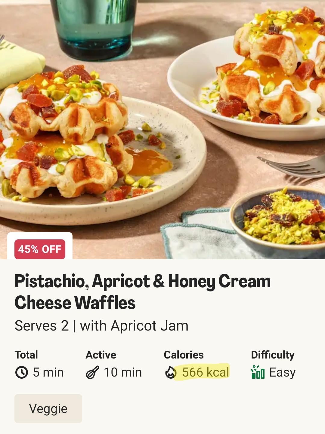 I bought the honey cream cheese pistachio waffles cause it was 45% off, and looked nice. And said it was 566 kcal a serving. Fab!