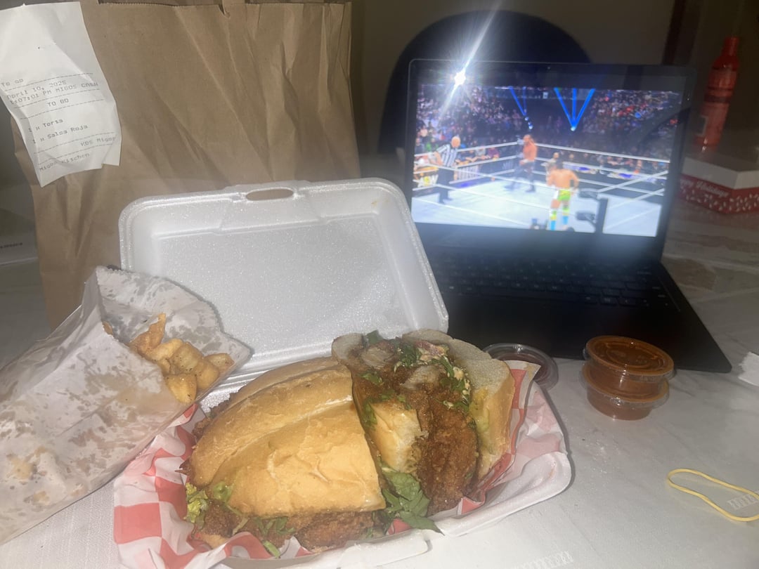 migos has been around for a year and man i’ve been a fan for a year too. it’s just incredible food. got to eat this while watching the best wrestling match of the year.