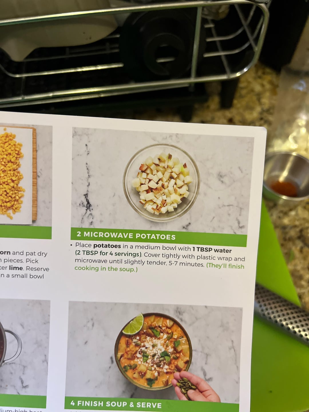 So I ordered a chowder without realizing one of the steps calls to microwave the potatoes before adding them to the soup. Problem is I do not have a microwave… but I do have an air fryer! I tried putting them in the air fryer on the reheat option at 345 for 7 minutes but I definitely should’ve left them in longer because after tasting my soup the potatoes were still pretty hard.