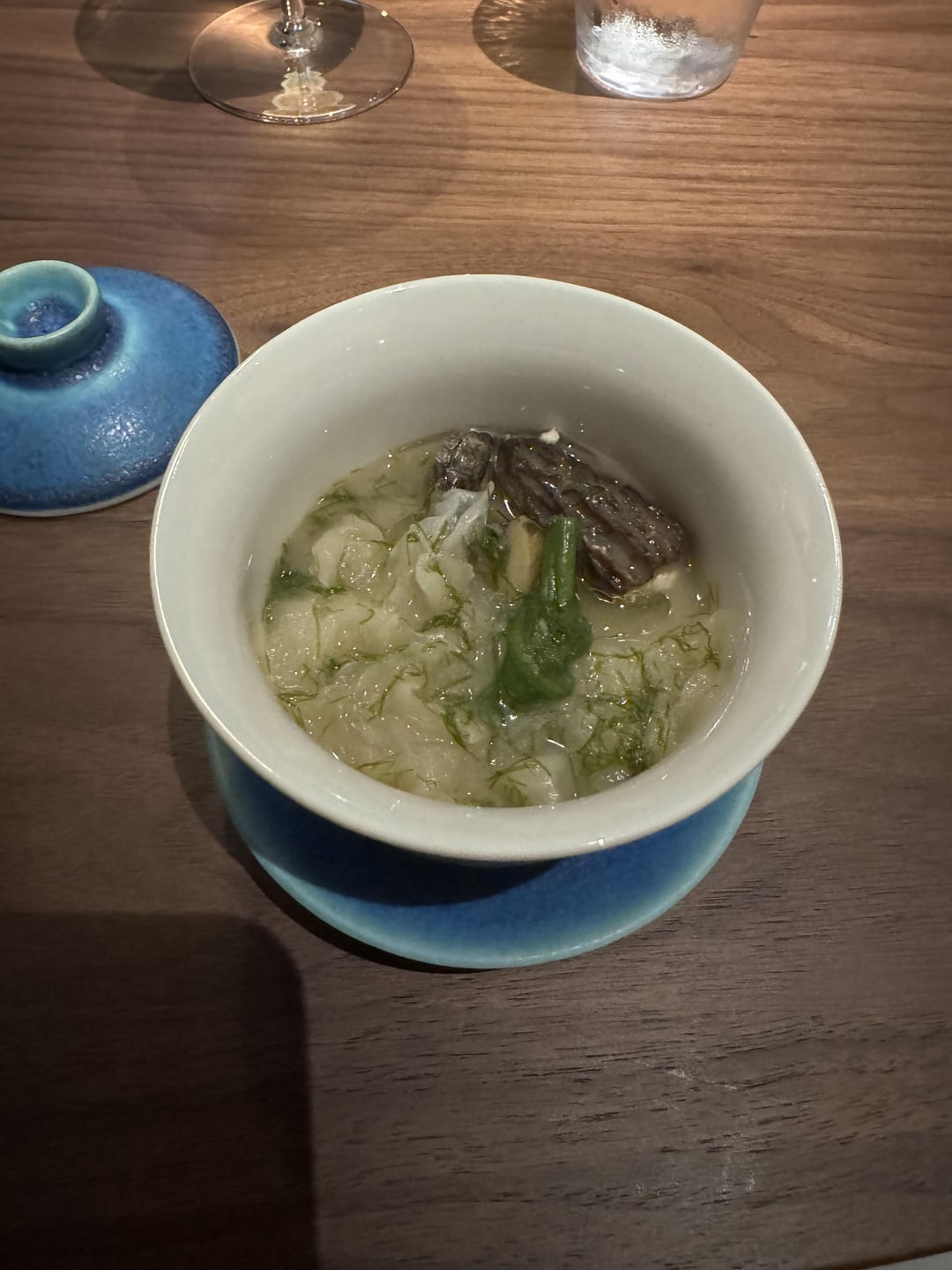 5: Morel mushrooms stuffed with mackerel. Probably the low point of the meal, though the flavors and textures may not have been for me.