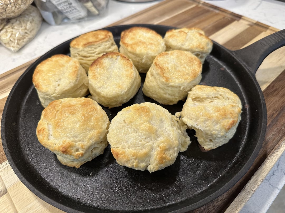 Biscuits from SallyBakingAddiction and sheet pan eggs from feelgoodfoodie.net