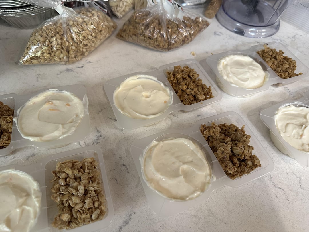 Made biscuits today for breakfast sandwiches with turkey sausage patties, eggs and cheese. Also prepped 10 yogurt/granola snack kits with Greek yogurt and granola from the bulk section at Winco.