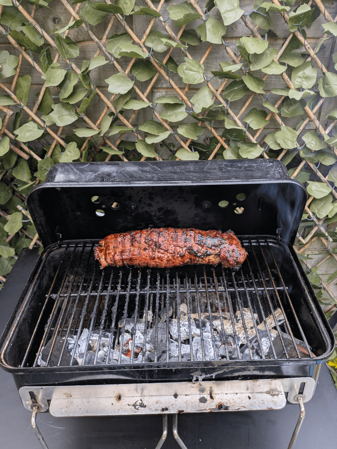Alton Brown did an episode of “Good Eats” some years ago in which he demonstrated a method of grilling a pork tenderloin by rotating it 120 degrees (along its axis) every 90 seconds. I did that once and have every time since. I cook to an internal temp of 145ish. Perfect.
