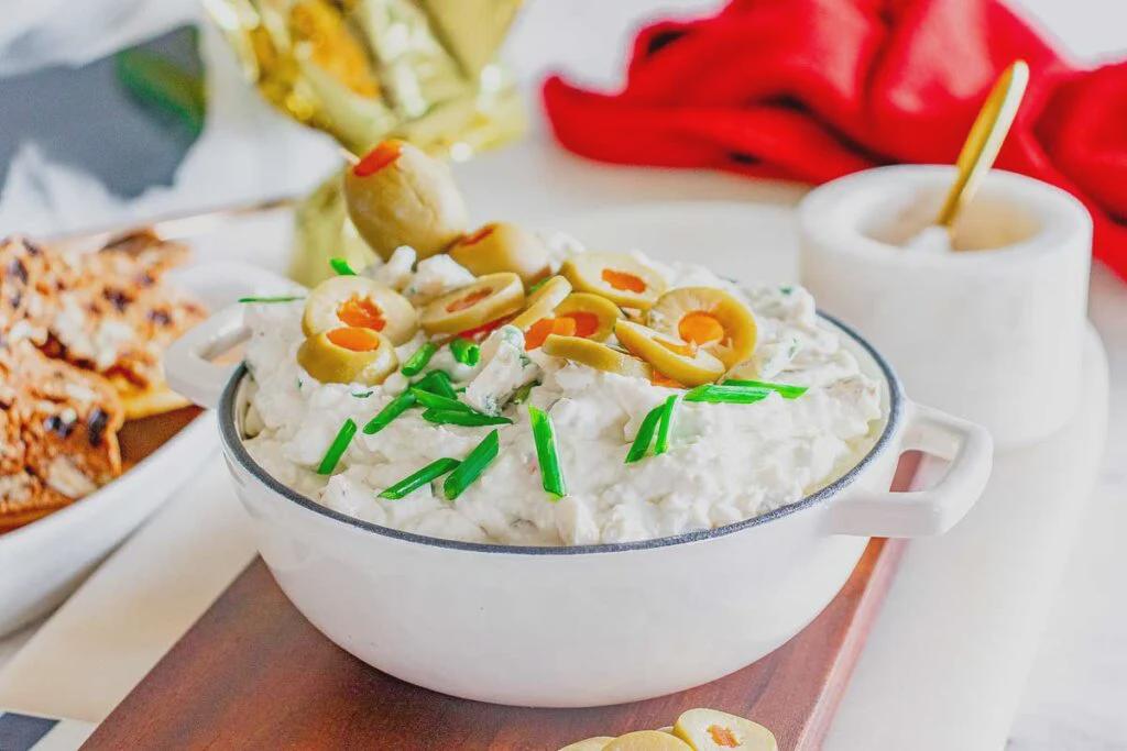 Whether or not you like to sip on a dirty martini cocktail, this **martini-inspired dip** is sure to please your palate if you enjoy creamy dip recipes and the taste of olives.