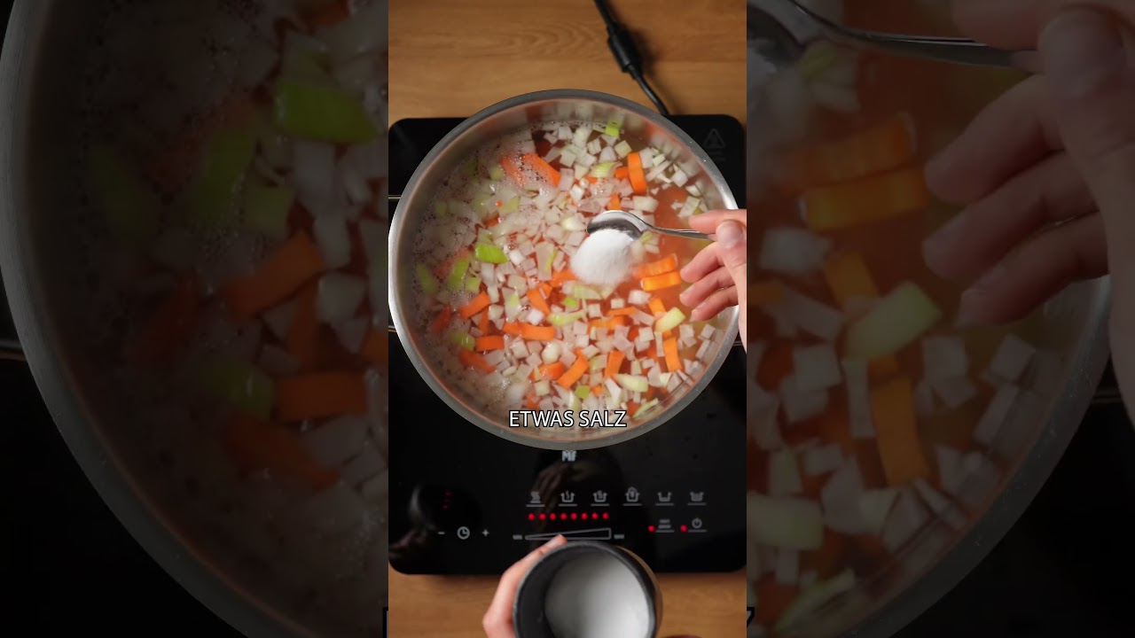 Mit einem Löffel nach Istanbul. Das kann nur diese Suppe. Cremig, würzig und perfekt. Das Herzstück dieser Suppe, rote Linsen. Und die müssen erstmal gründlich gewaschen werden. Außerdem kommt in die Suppe noch Zwiebel, Kartoffel, Karotte und Knoblauch. Das muss alles einmal gesäubert und geschellt werden und dann in möglichst kleine Stücke geschnitten oder geraspelt werden. Das Gemüse kommt kurz an die Seite, denn jetzt wird ein Topf mit 2 l Wasser zum Kochen gebracht. Da kommt dann das Gemüse zusammen mit den Linsen, etwas Salz, gemeinem Pfeffer und Gemüse oder Hühnerbrühe rein. Mit geschlossenem Deckel für etwa 30 Minuten bei niedriger Hitze köcheln lassen. Dabei aber unbedingt immer mal wieder umrühren, damit die Linsen nicht am Boden festhängen. Danach wird in einem separaten Topf etwas Butter geschmolzen und darin Tomatenmark, frisch gehackte Minze und Petersilie und etwas edelsüßes und rosenscharfes Paprikapulver für 2 bis 3 Minuten angebraten. Das kommt jetzt in die Suppe und dann wird alles zusammen noch mal für 5 bis 10 Minuten gekocht. Speicher das Video jetzt unbedingt schnell ab, um es später nachzukochen. Es lohnt sich. Die Suppe muss jetzt nur noch gleichmäßig püriert werden. Mit Salz und Pfeffer abschmecken, nicht vergessen und servieren. Am besten serviert ist sie übrigens mit feurigen Chiliflocken und frischen Zitronensaft. Außerdem ist natürlich ein Fladenbrot die perfekte Beilage zum Dippen.