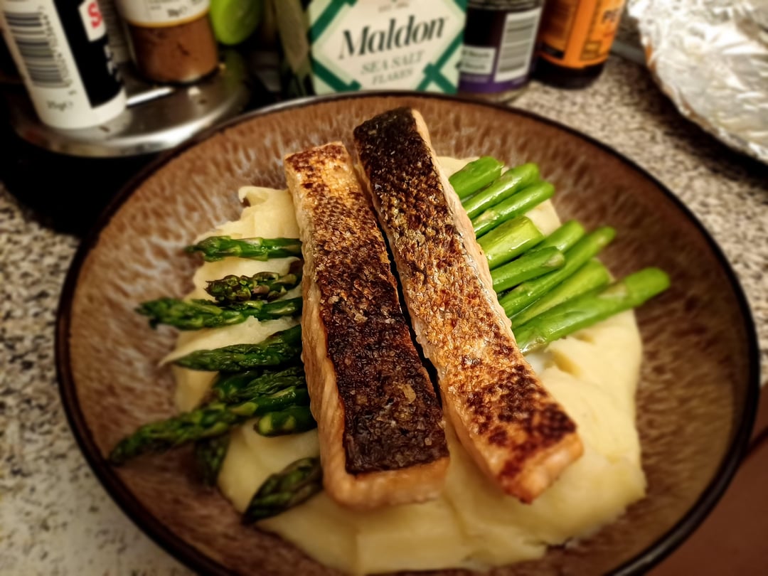Pan fried Salmon with mashed potato, asparagus and parsley sauceby ksw85 Write A CommentYou must be logged in to post a comment.