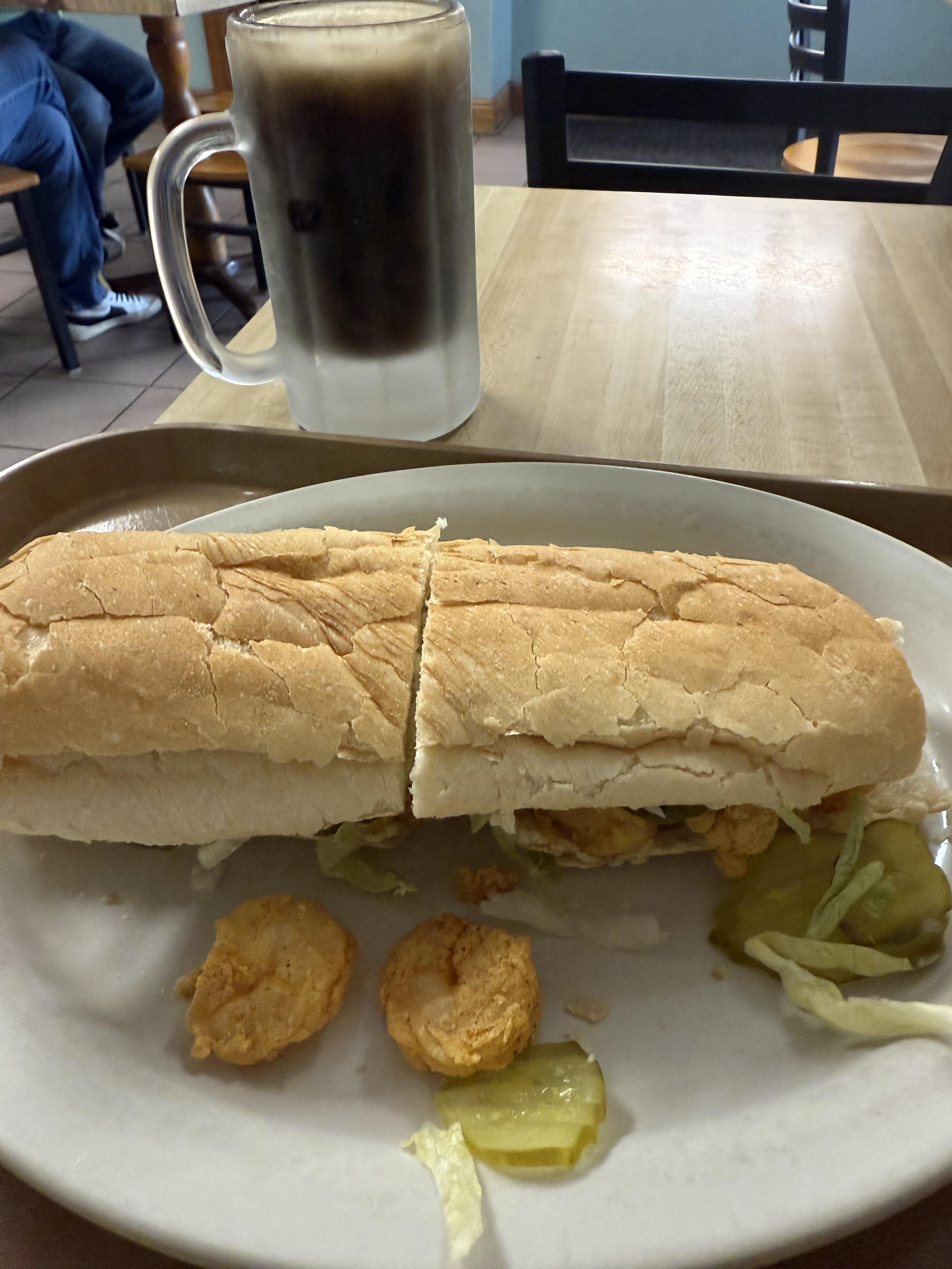 Shrimp po-boy and frozen root beer at the Frostop in LaPlace, LA by jmiele31 5 Comments JegerLF 6 months ago Dat bread! redhotphishpigeons 6 months ago Thats a vibe right there sodandy 6 months ago Need a cross section! comicsnerd 6 months ago Not sure if you are bragging or complaining. MikaAdhonorem 6 months ago If you enjoyed this, wait until you try the original… … a fried oyster po-boy. Mind-blowingly good.Write A CommentYou must be logged in to post a comment.