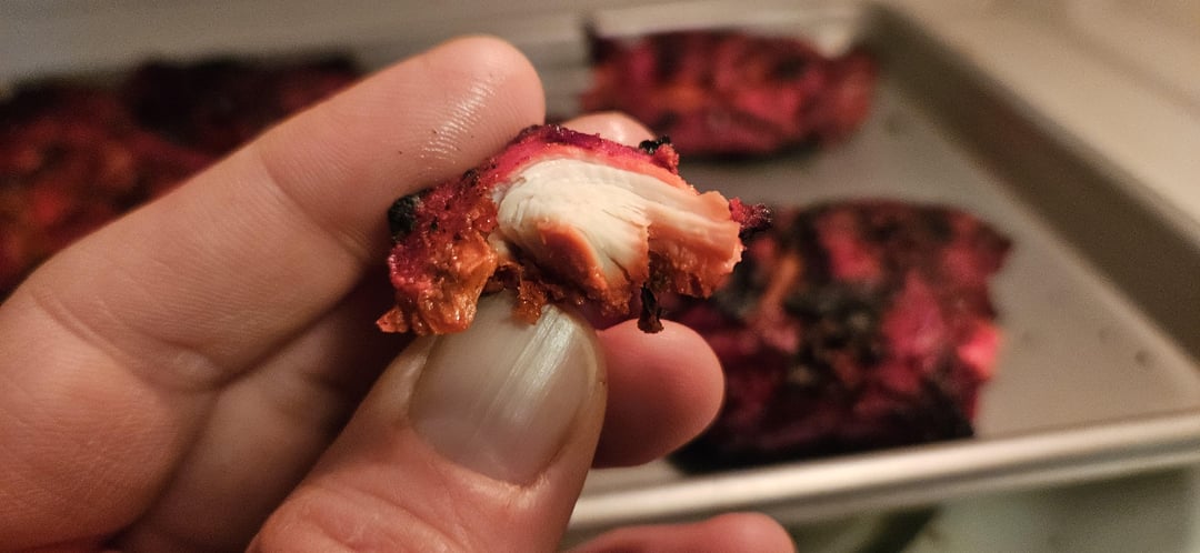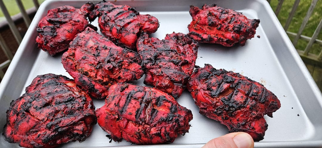 My kid has been obsessed with making lava chicken since watching the Minecraft movie. My take on it was chicken tandoori. We made the marinade, put the chicken in it last night, and grilled it over charcoal tonight. It was tasty as hell!