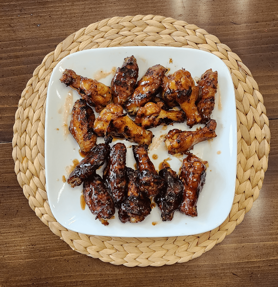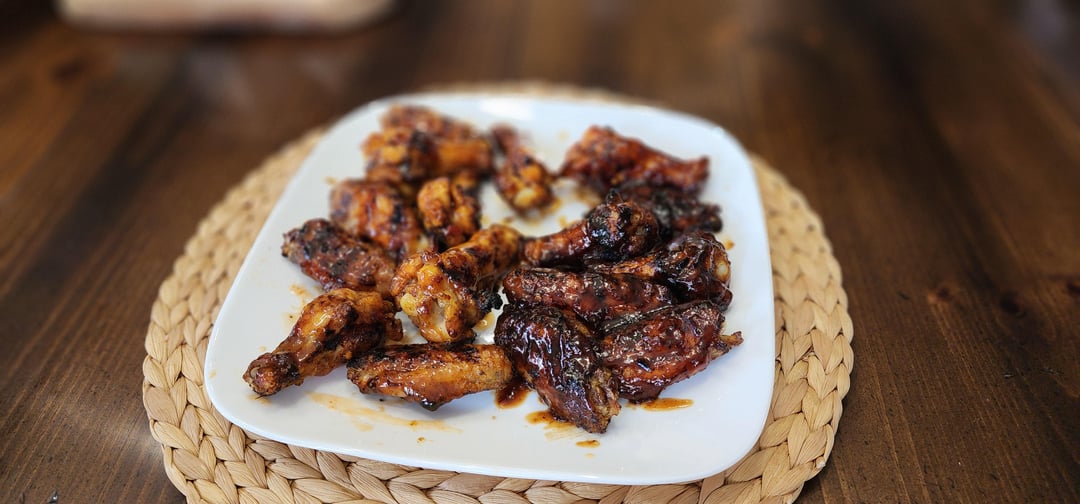 Grilled some wings on the propane grill tonight. Half Slows BBQ apple BBQ sauce and half country sweet sauce.