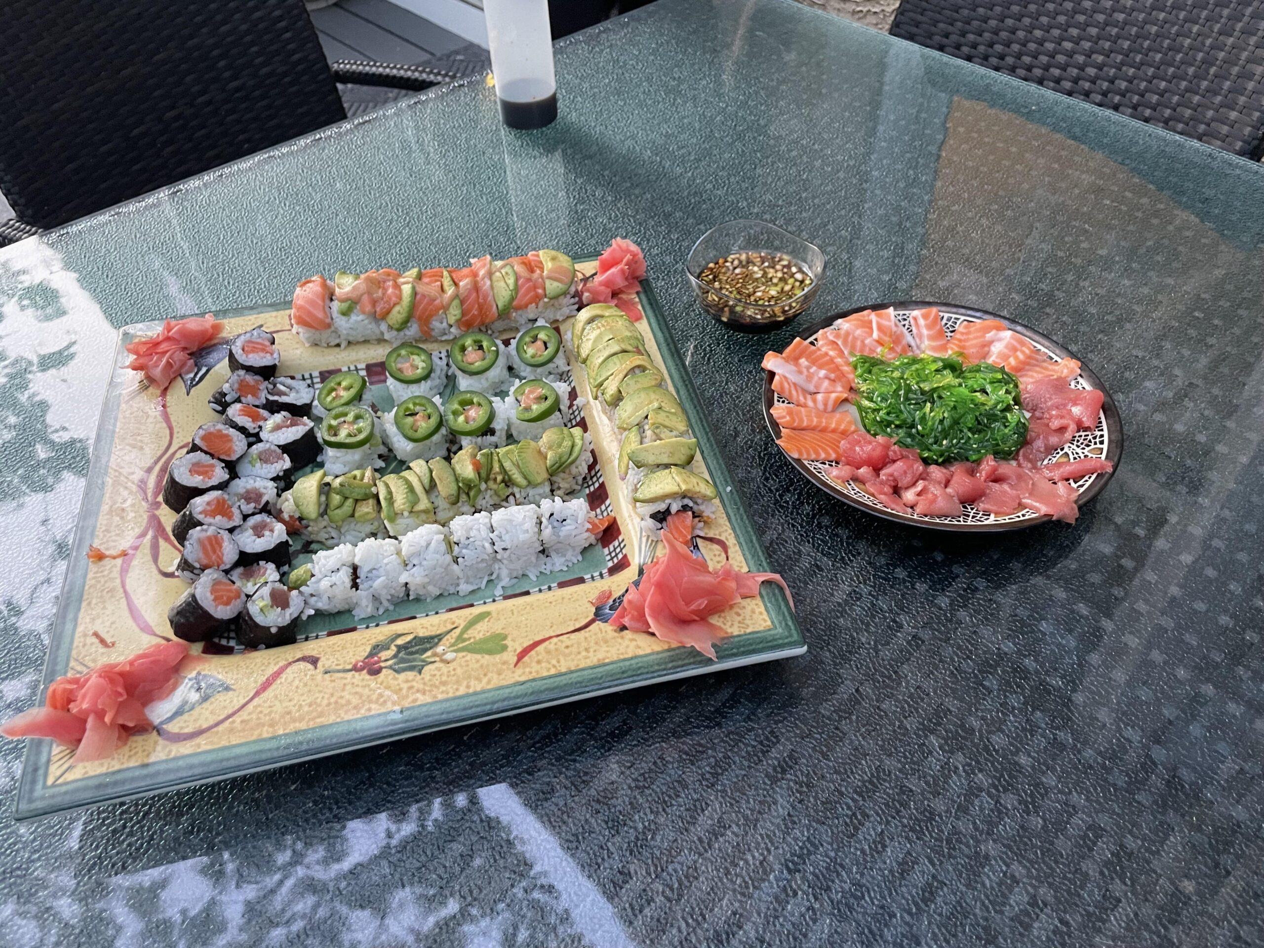 Mom finally finished radiation and can eat sushi again. Been practicing for this day a long while!