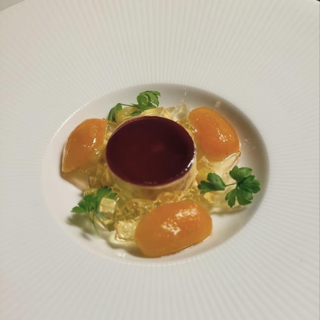 Parmesan-Black Pepper Savory Panna Cotta: Chef Patrick has always supported being “proud of your past” and loves playing with flavor memories from his American childhood, unfortunately, this dish went back to his childhood, literally… the 50s-60s. The panna cotta was overly gelatinous, with little cheese or pepper flavor, and the jellied sides had a very strange mouthfeel/taste. While the individual jellies were good, they were awful when eaten together. There’s no need to be serving a dish that’s jelly on jelly on jelly in 2025. 13/20