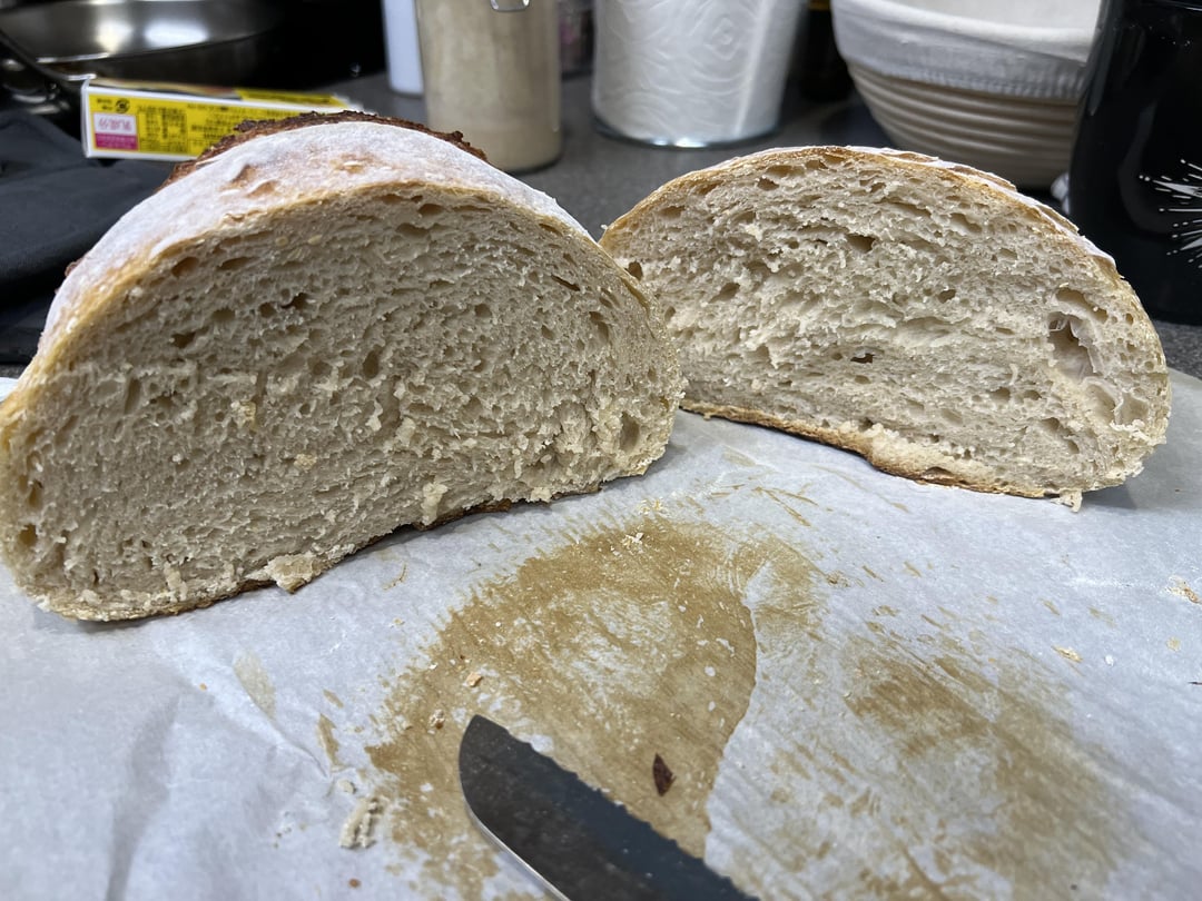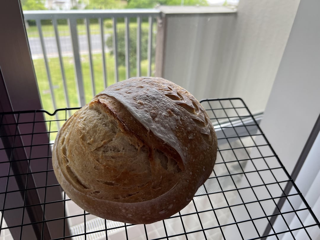 - 100g starter, 420g water, 15g salt, 600g bread flour