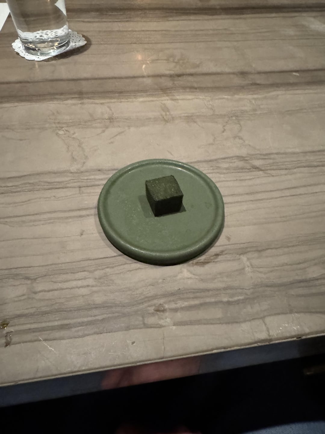 - Palate Cleanser: Frozen anise jelly with mint. This was a bit like eating a frozen, gummy breath mint. It was ok, not my favorite palate cleanser of all time.