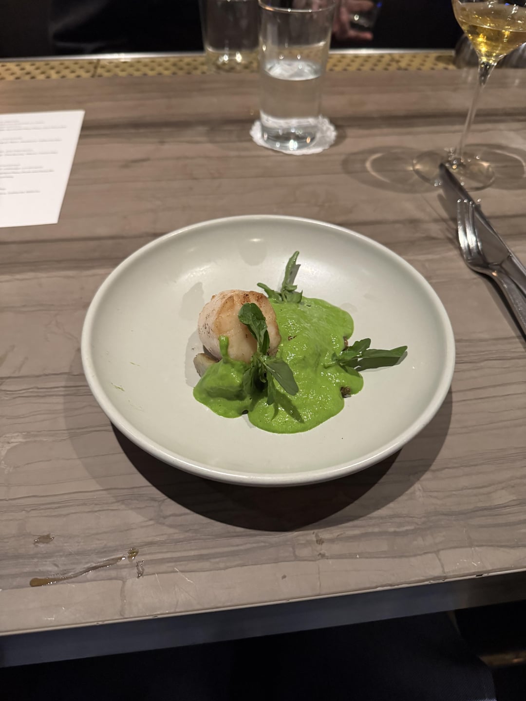 - Fourth Course: Duck liver tart with salted ramp and toasted buckwheat. This was the only repeat on the tasting menu and was excellent as always.