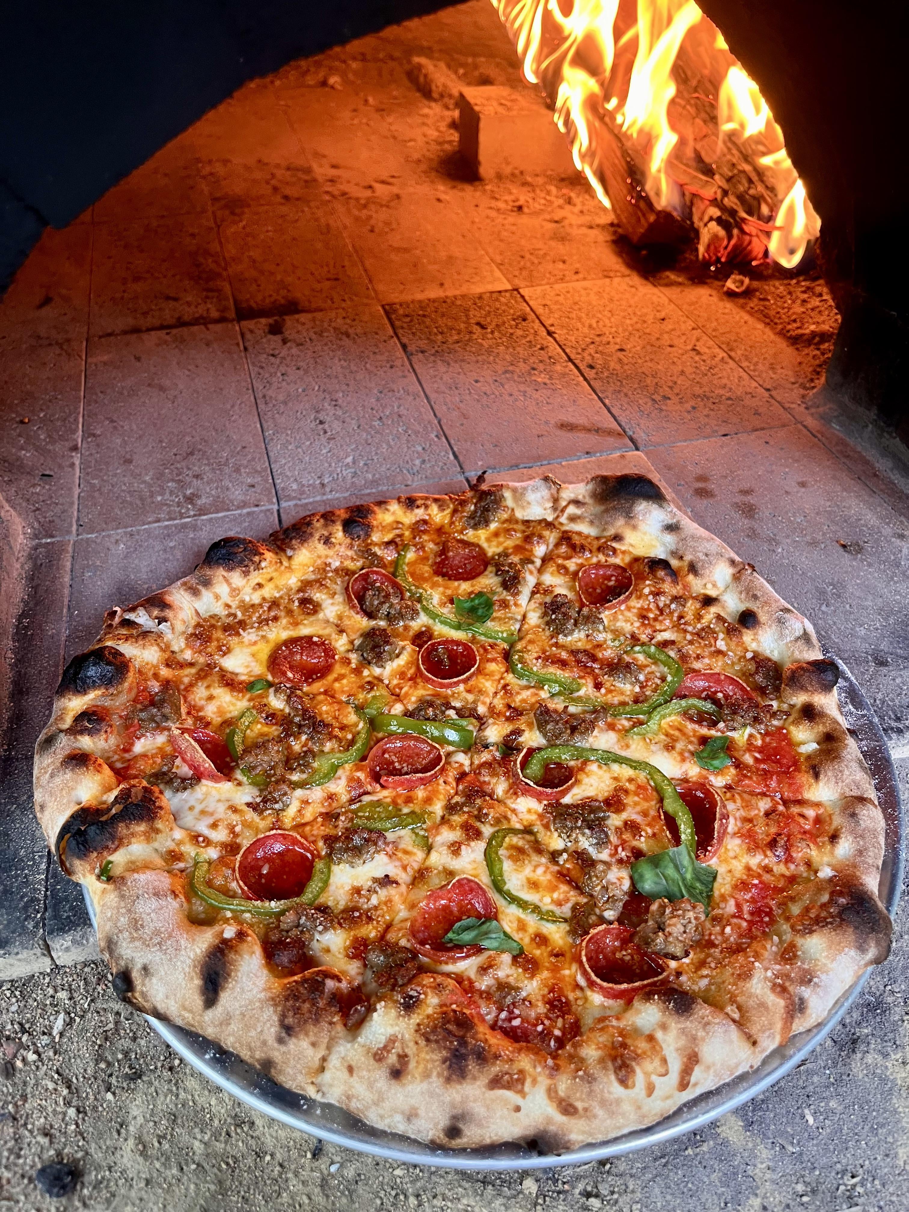 Pepperoni, sausage and green peppers in the wood fired-oven. 🍕🔥by august_dude 8 Comments Nate22212 5 months ago Looks good SeriousTwo82 5 months ago That is perfection. Look at those pepperoni’s. CoupCooksV2 5 months ago Great combo of toppings, looks amazing! NarcanBob 5 months ago Great oven!!!! sporadicPenguin 5 months ago Sorry for the pun, but that looks FIRE Mobile_Aioli_6252 5 months ago Absolutely gorgeous pizza 😋 Fantastic_Bird_5247 5 months ago Yea that works, nice pie!! earthresident111 5 months ago Perfection 🤤Write A CommentYou must be logged in to post a comment.