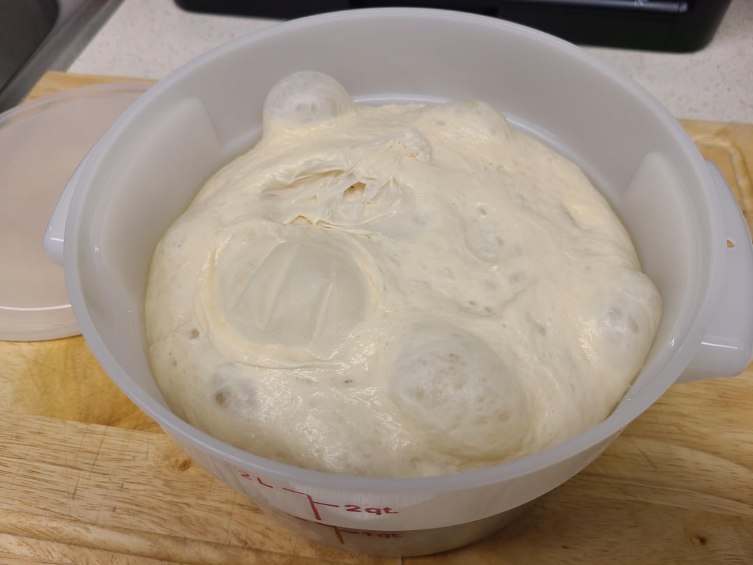 bigboxes1 5 months ago Some pics of the dough process.https://preview.redd.it/5zsnm86uprye1.jpeg?width=3024&format=pjpg&auto=webp&s=af61b1a7c8b9b85e09a24e653cab2f521208307fDough has been divided, kneaded, balled, brushed with olive oil and covered with plastic wrap. Let sit on counter for two hours.