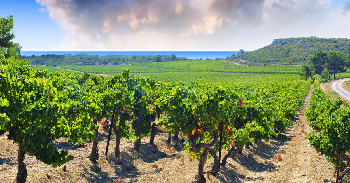 On the southern coast of France in the large Languedoc wine region — a rough triangle makes up six seaside communities bound by the cities of Agde to the south, Pézenas to the northwest and Sète in the east — is where the ancient Picpoul grape has lived for centuries. And running right through the middle of this geographical triangle is the ancient Roman road Via Domita (Domitienne in French) used as a passage from Gaul to Italy, which divides the now Picpoul de Pinet sub-appellation from north and south. On the northern side of the divide vineyards are spaced out between swaths of scrub brush and rocky outcroppings. To the south the hills are lower and sandy, dominated by fossil-rich soils. On the south side, there are only vineyards and they grow right down to the Mediterranean Sea. You can actually stand in a vineyard and see the clear blue water in the distance.