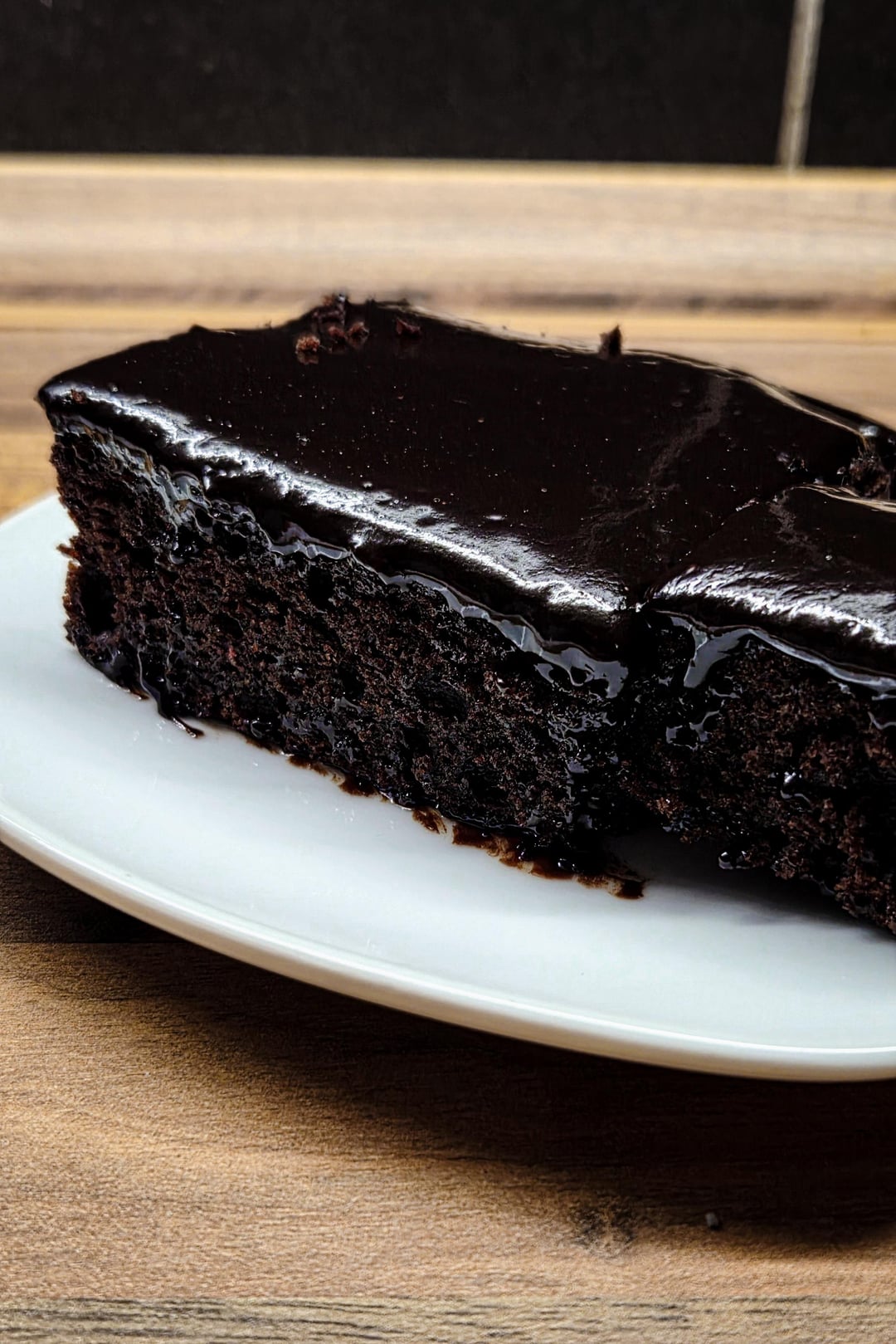 Let the cake cool and then pour the chocolate glaze over it. I