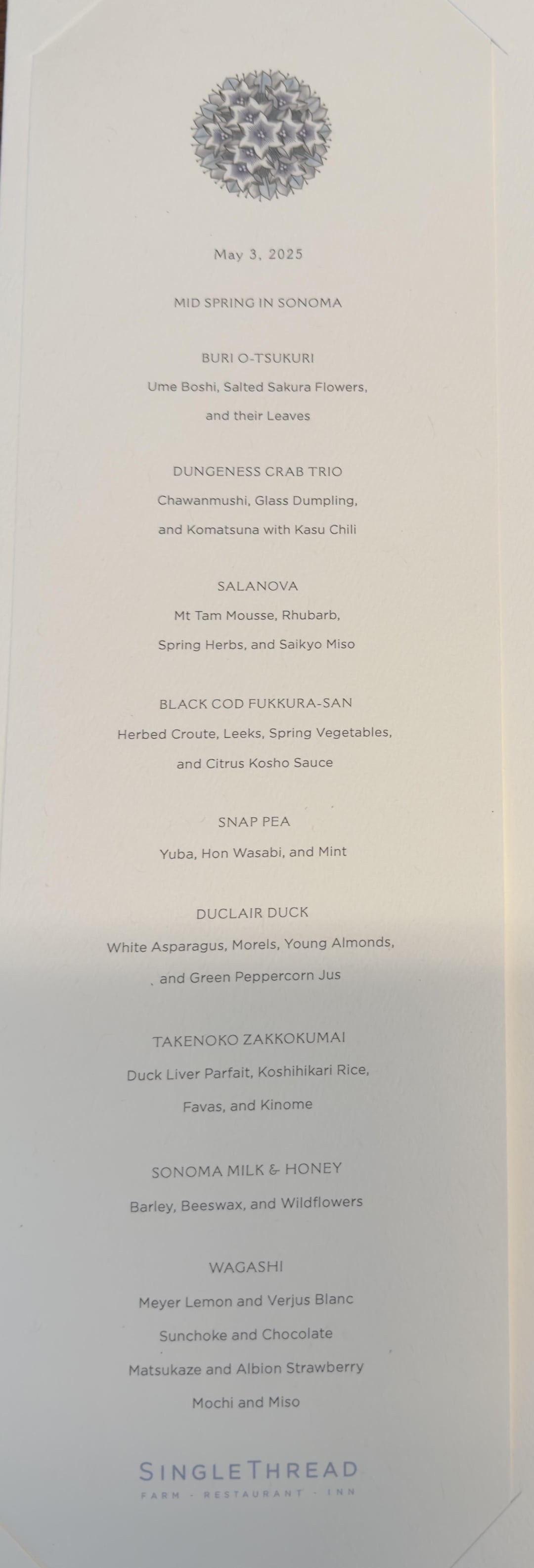 TLDR – SingleThread is probably the purest expression of a farm-to-table, produce-driven fine dining meal (California influence on Japanese kaiseki). If you're in to a fresh, veggie forward meal, or Japanese fish-focused meal, then it's worth the journey and money.