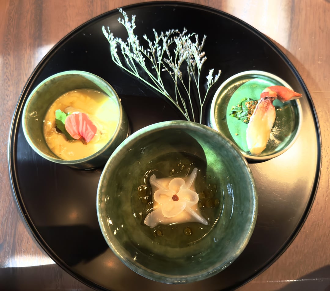 Food – the food is incredibly fresh and focused on the what is in season on the farm. The opening spread everyone has seen by now is a great way to open the palate for what's about to come. There was only two dishes I didn't care for (duck and buri (old amberjack)) the rest ranged from good to probably 2 dishes I was wowed by. Compared to other tasting menus, this one felt very healthy and clean, and a bit more subdued in flavor intensity. If you want subtle and you like fish, you'll love SingleThread. The dishes that wow'd me are: