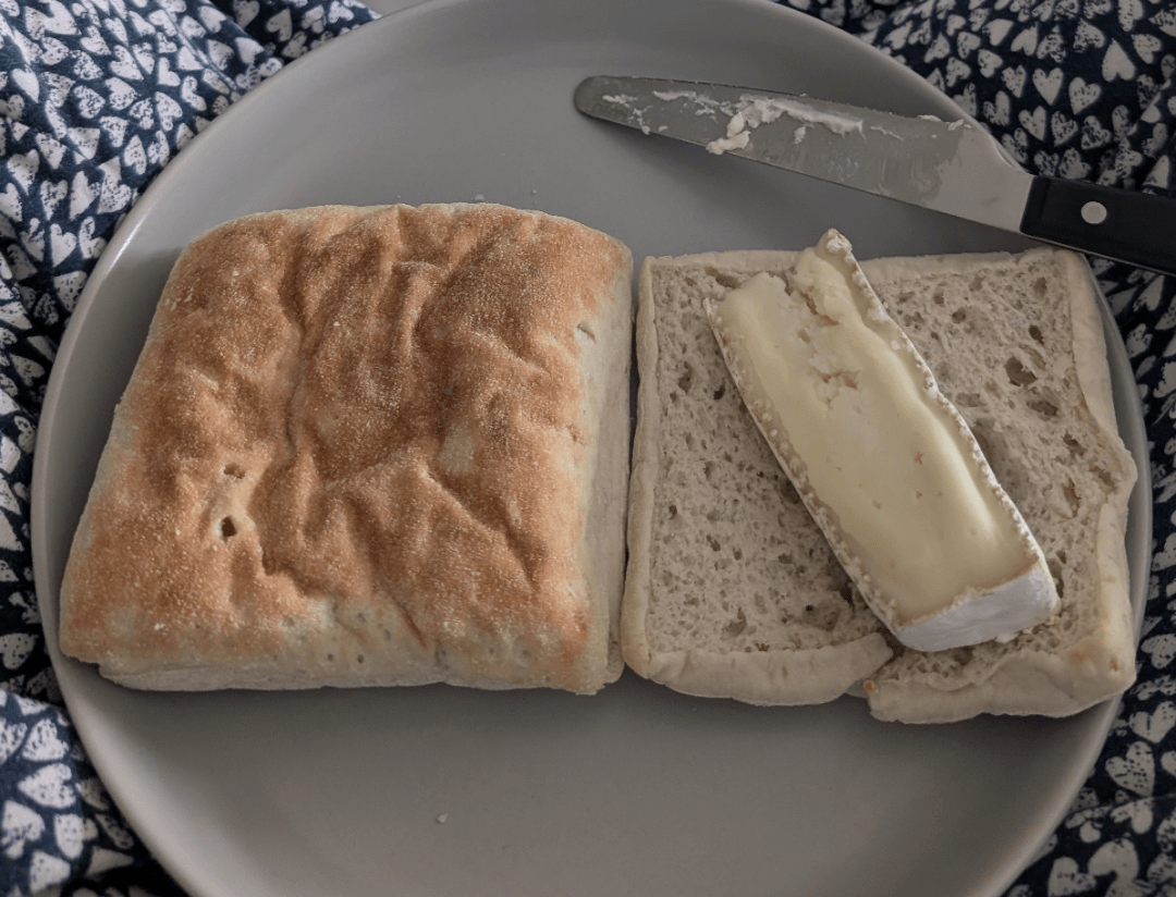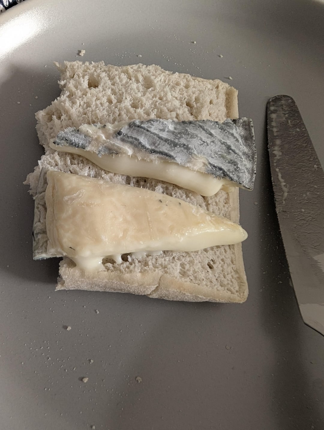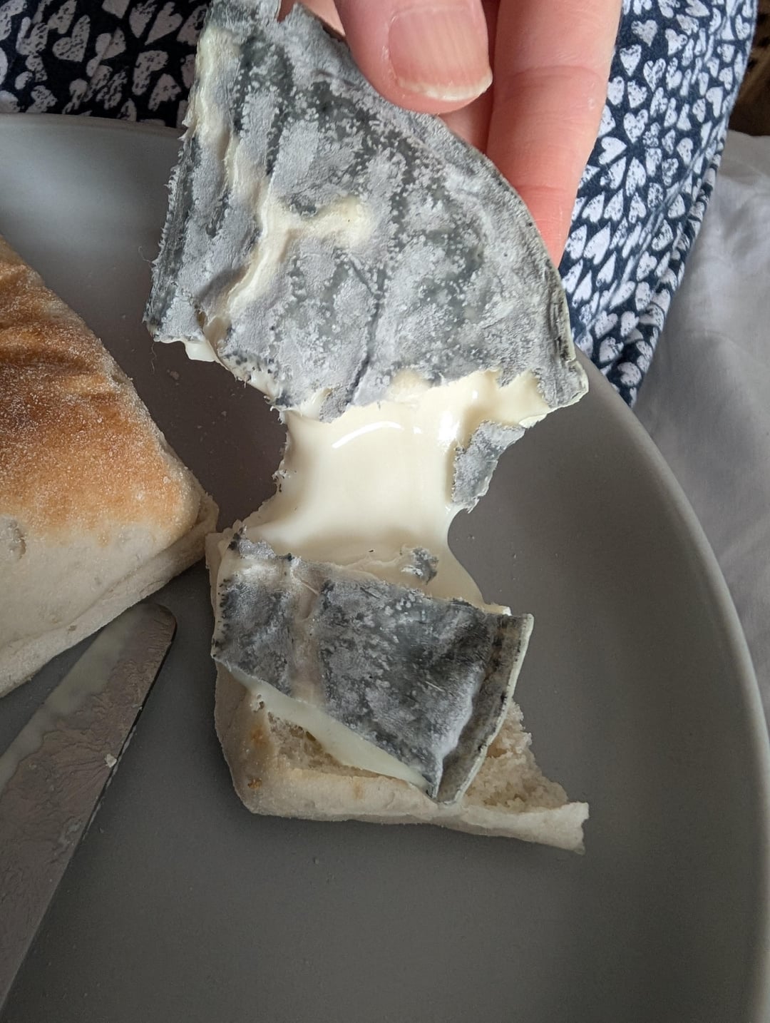 Cathare is a thin goat milk cheese from France, with an Occitan cross on the top (not pictured, alas, I forgot to take a picture right side up before eating, but you can check it at the link). Decadent!