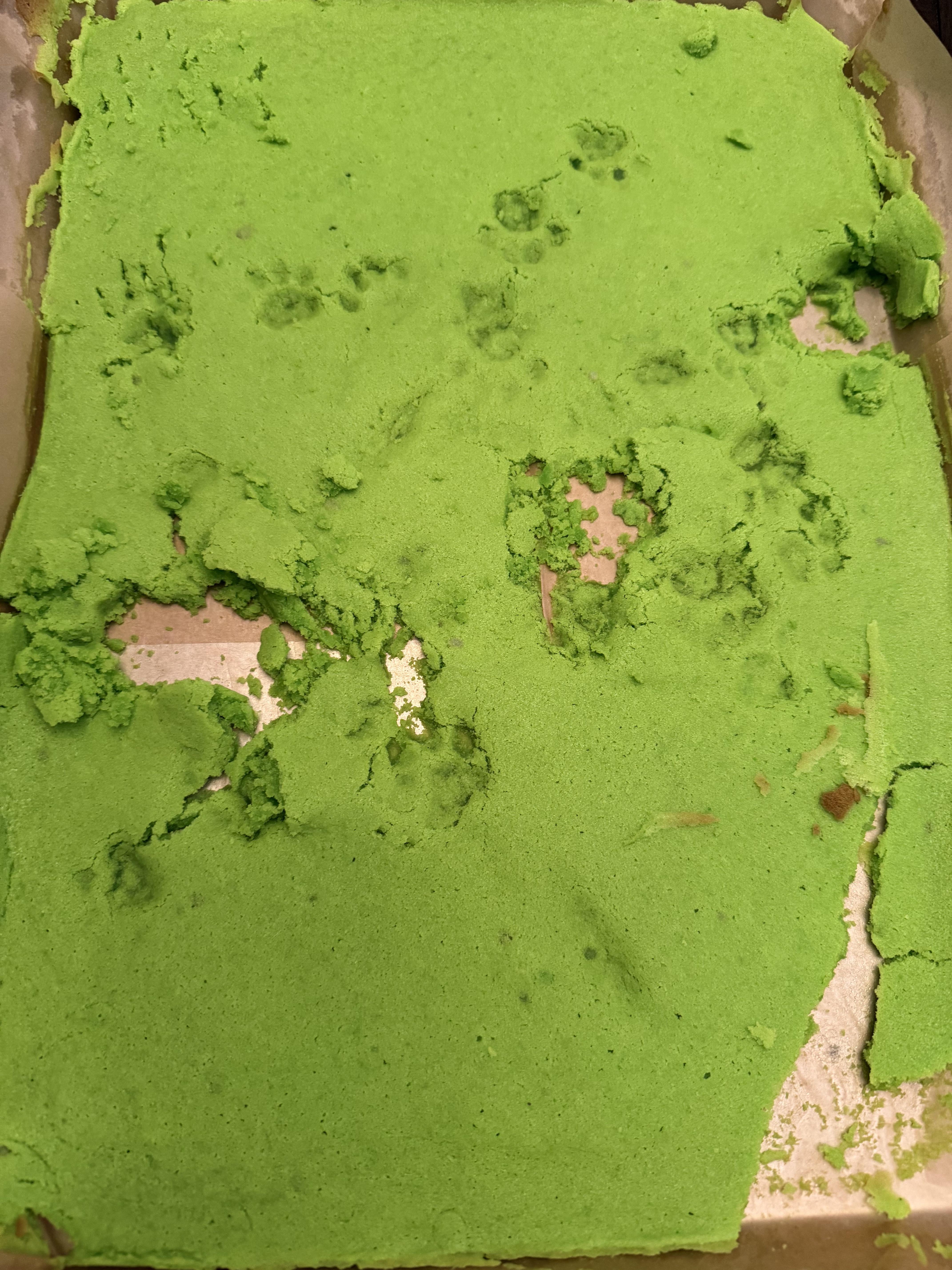 One time my new long haired kitten jumped up on the counter, straight into my gluten free cake batter already in a nice greased baking pan. I had only a few hours before guests arrived to my kid’s birthday party and I had no cake and a pissed off kitten going berserk around the house covered in cake batter. He has since learned no cats on the counter!